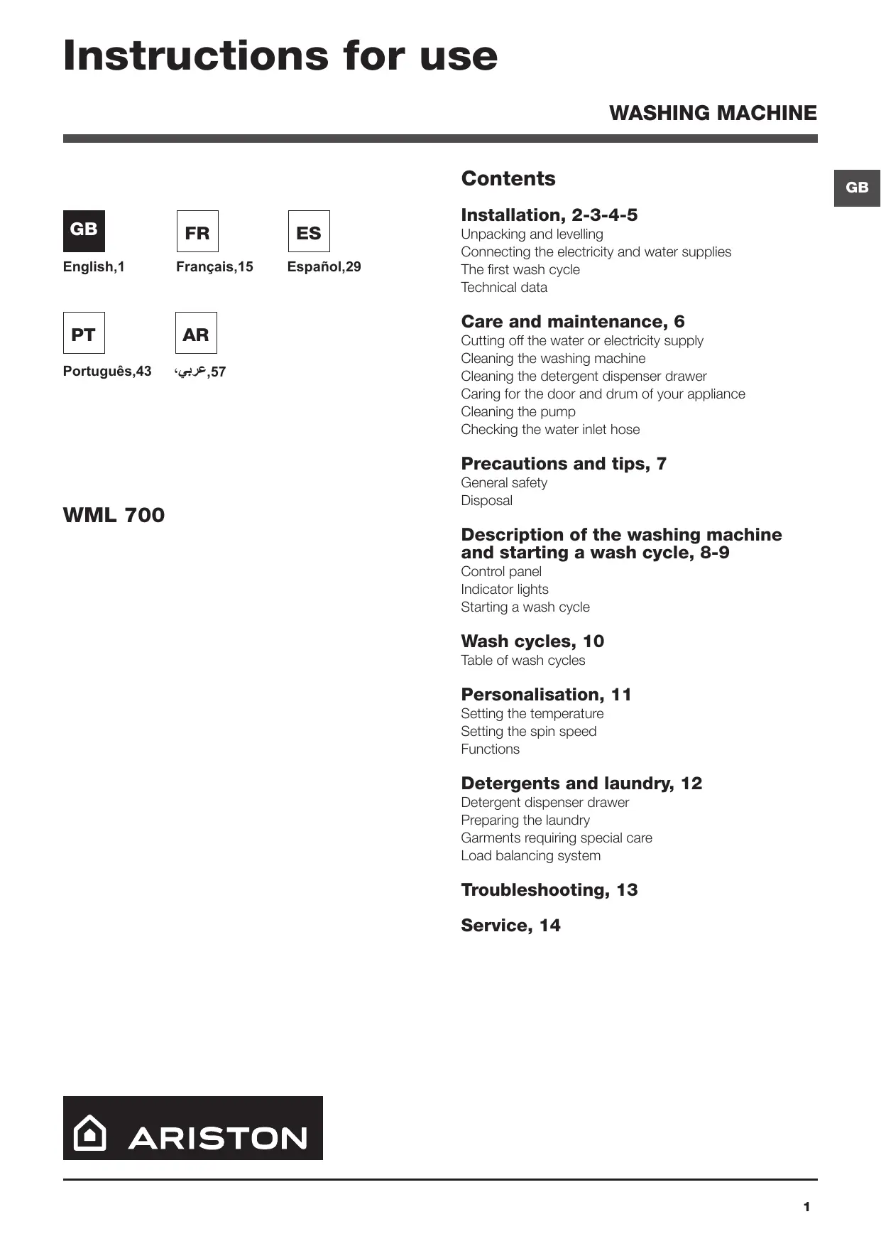 (Ô\ ARISTON Contents
