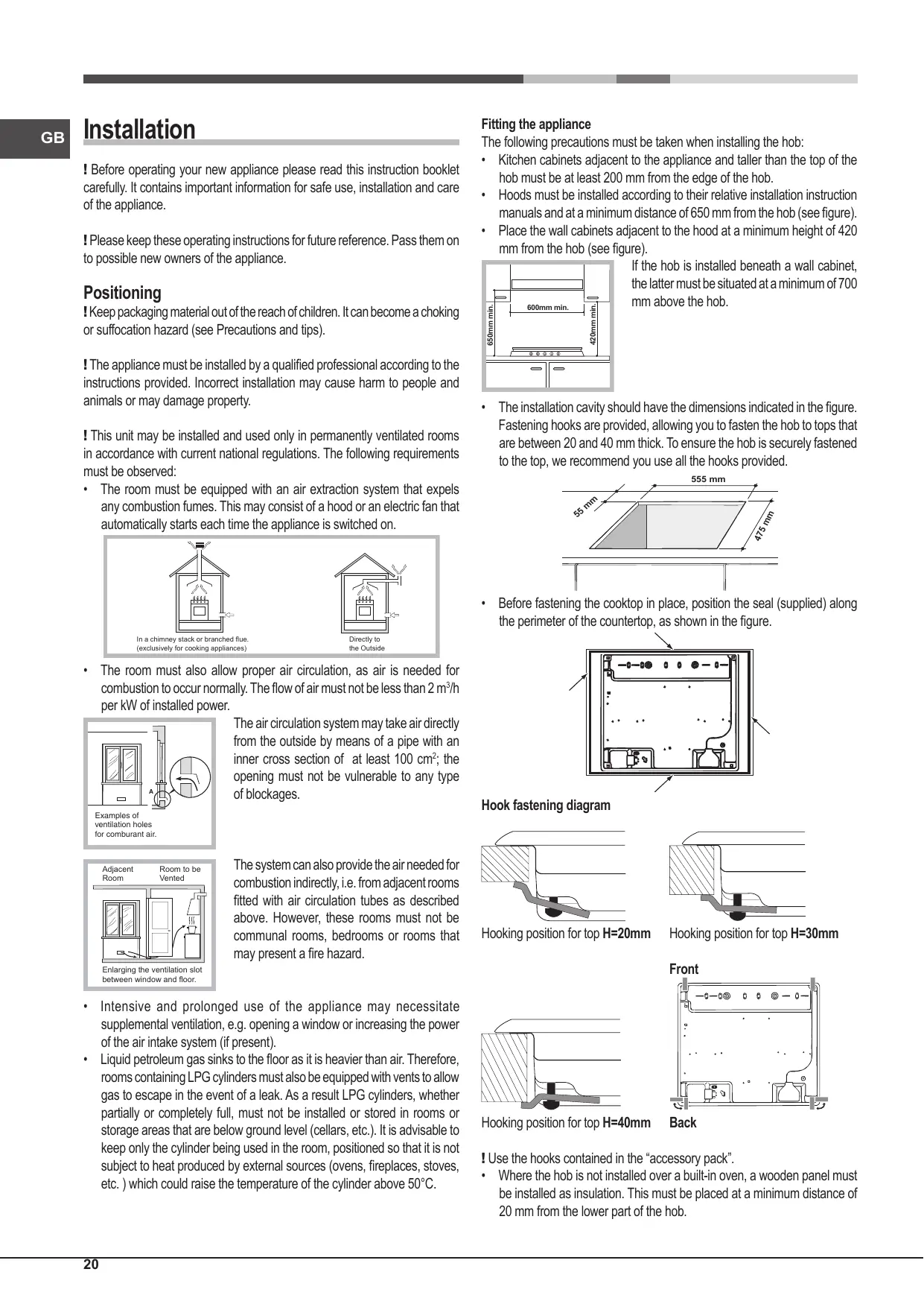 ! Before operating your new appliance please read this instruction booklet carefully. It contains important information for safe use, installation and care of the appliance. Fitting the appliance The following precautions must be taken when installing the hob:
