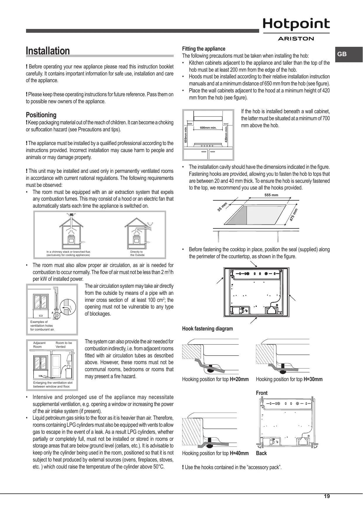 ! The hob can only be installed above built-in ovens with a cooling ventilation system.