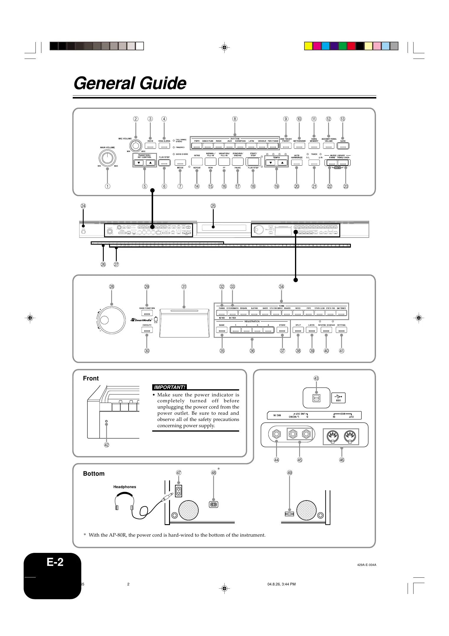 CC) 1 General Guide [IMPORTANT ! | + Make sure the power indicator is completely turned off before unplugging the power cord from the power outlet. Be sure to read and observe all of the safety precautions concerning power supply. Bottom