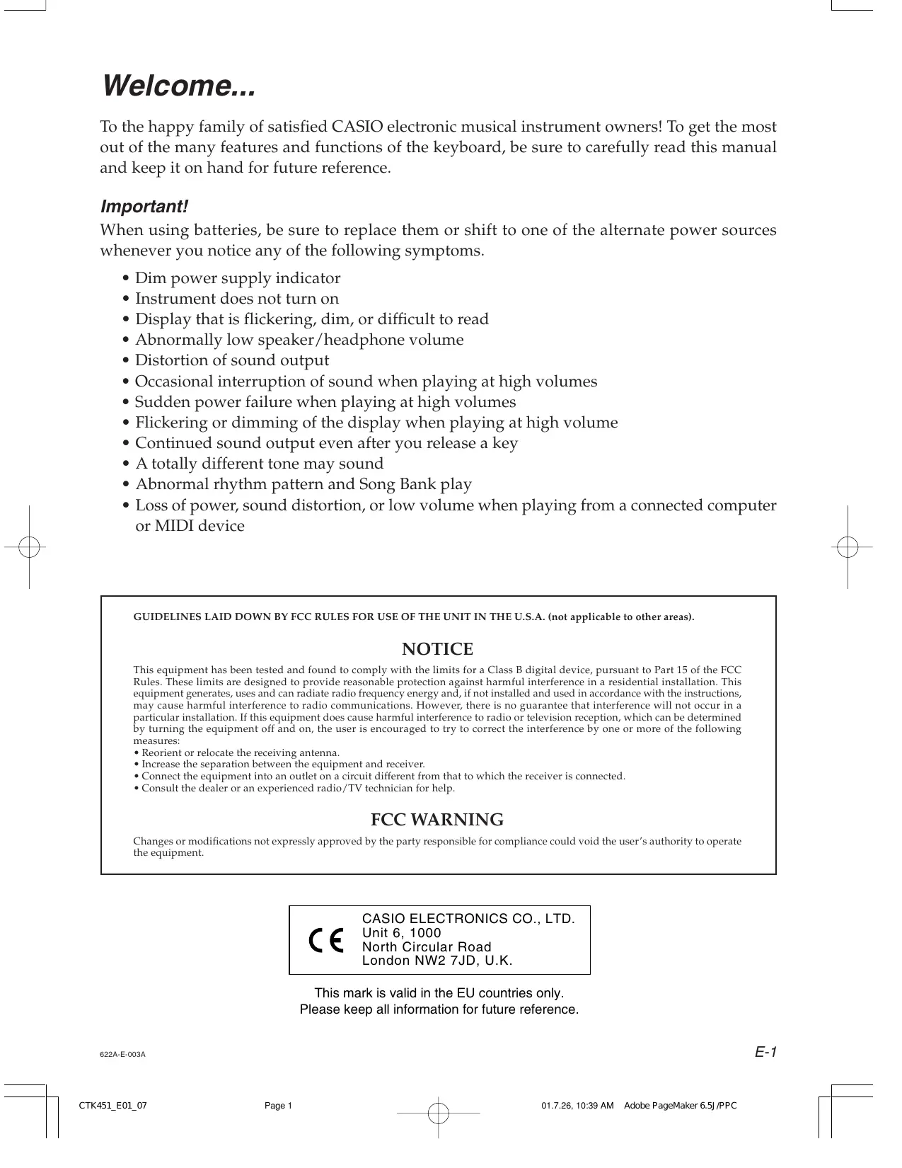 To the happy family of satisfied CASIO electronic musical instrument owners! To get the most out of the many features and functions of the keyboard, be sure to carefully read this manual and keep it on hand for future reference.
