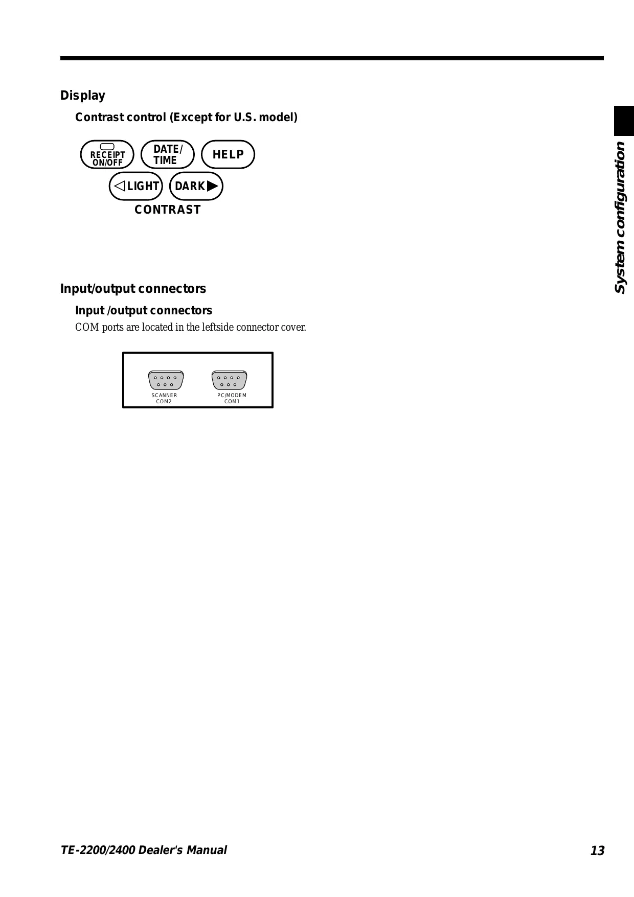 This manual is intended to be used as a reference to the TE-2200 and TE-2400 system. It provides details to allow whole understanding of the system capabilities, its operation, and how it can be used to solve many problems within the retail outlet. This manual consists of the following chapters: 1. Hardware configuration (for installation) This chapter describes the hardware of these models and their network systems. 2. IPL (initial program loading) This chapter describes how to download the application program to the terminal. 3. Initialization This chapter describes how to set up the peripheral devices and the terminals. 4. Programming This chapter explains actual programming procedure and functions. Manager mode X/Z report 7. Application system 8. Tips 9. Appendix:
