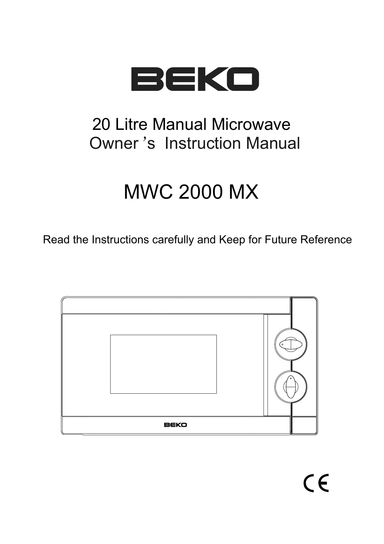 20 Litre Manual Microwave Owner s Instruction Manual MWC 2000 MX Read the Instructions carefully and Keep for Future Reference