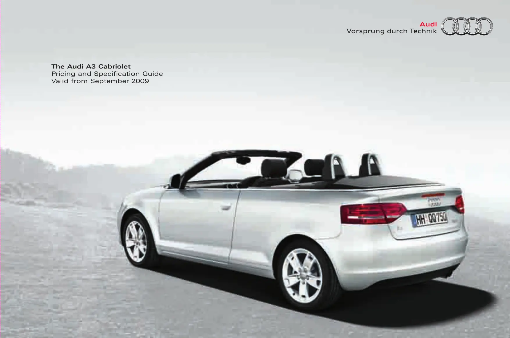 Standard model equipment All A3 Cabriolet models have the following items of Standard equipment: Engines Automatic start/stop function for greater fuel and CO2 efficiency. Comprising: — Recuperation for optimal energy utilisation — Energy-saving tips feature in Drivers Information System; including gearshift indicator (if fitted) {Only available on 1.6 TDI manual engines) Wheels, tyres and suspension 16 x 6.5J ‘7-arm’ design alloy wheels with 225/55 R16 tyres Space-saving spare wheel Audio and communication Audi Chorus radio/single CD player with front speakers Seats Driver and front passenger seat-height manually adjustable Easy entry front seats ‘Frequency' cloth upholstery Seat belts — 3-point on all four seats Split-folding rear seats (50:50) 16 x 6.5J ‘7-arm' design alloy wheels Safety and security Anti-theft wheel bolts Audi backguard head restraints for front seats (adjustable) Daytime running lights Driver, front passenger and side airbags for front seats Electronic Stability Programme (ESP), including ABS, EBD, ASR and EDL Halogen headlights Front and rear ISOFIX child seat preparation (front passenger with airbag deactivation switch} Rear fog light Rear head restraints Remote-control central locking Roll-over protection bars Servotronic — electromechanical, speed-sensitive, power-assisted steering Thatcham Category 1 Alarm and Immobiliser Warning triangle Tool kit and car jack Driver, front passenger and side airbag for front seats Interior equipment 4-spoke leather steering wheel (not on S tronic models) 3-spoke leather Sports steering wheel with gear-change paddles {S tronic models only) Electric front and rear windows Front and rear floor mats Granite or Umbra inlays and door trim (depending on upholstery colour, see page 28) Heated rear glass screen Heat-insulating glass Illuminated vanity mirrors Manual air conditioning Manual headlight adjustment Steering wheel adjustable for height and reach Washer fluid level indicator Exterior equipment Body-coloured door mirrors with integrated indicators Electrically-operated and heated door mirrors Semi-automatic electrically-operated soft-top Split-folding rear seats (50:50)