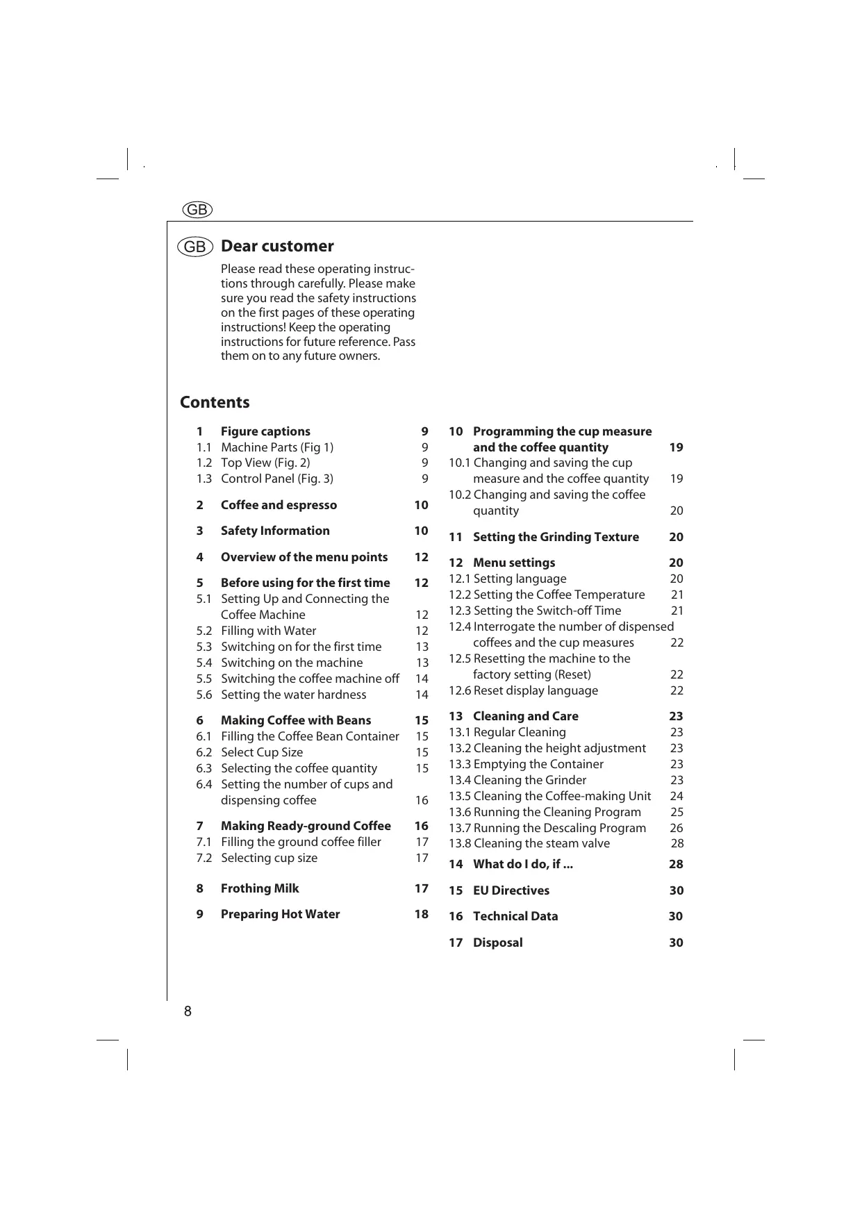 GB Dear customer Please read these operating instructions through carefully. Please make sure you read the safety instructions on the first pages of these operating instructions! Keep the operating instructions for future reference. Pass them on to any future owners. Contents
