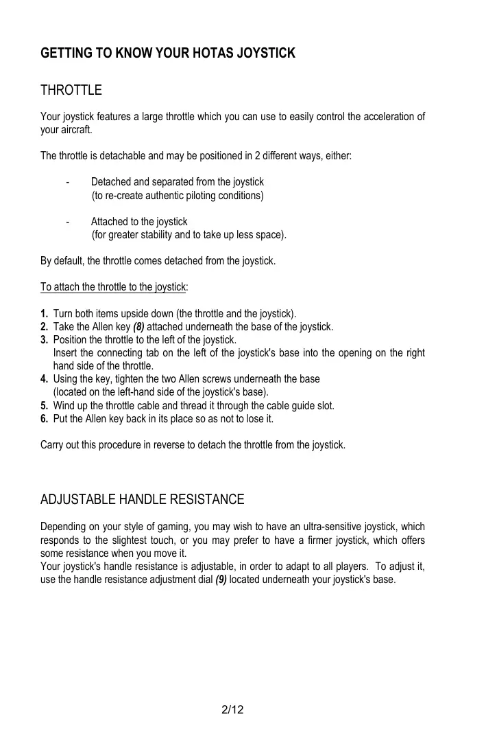 GETTING TO KNOW YOUR HOTAS JOYSTICK THROTTLE Your joystick features a large throttle which you can use to easily control the acceleration of your aircraft.