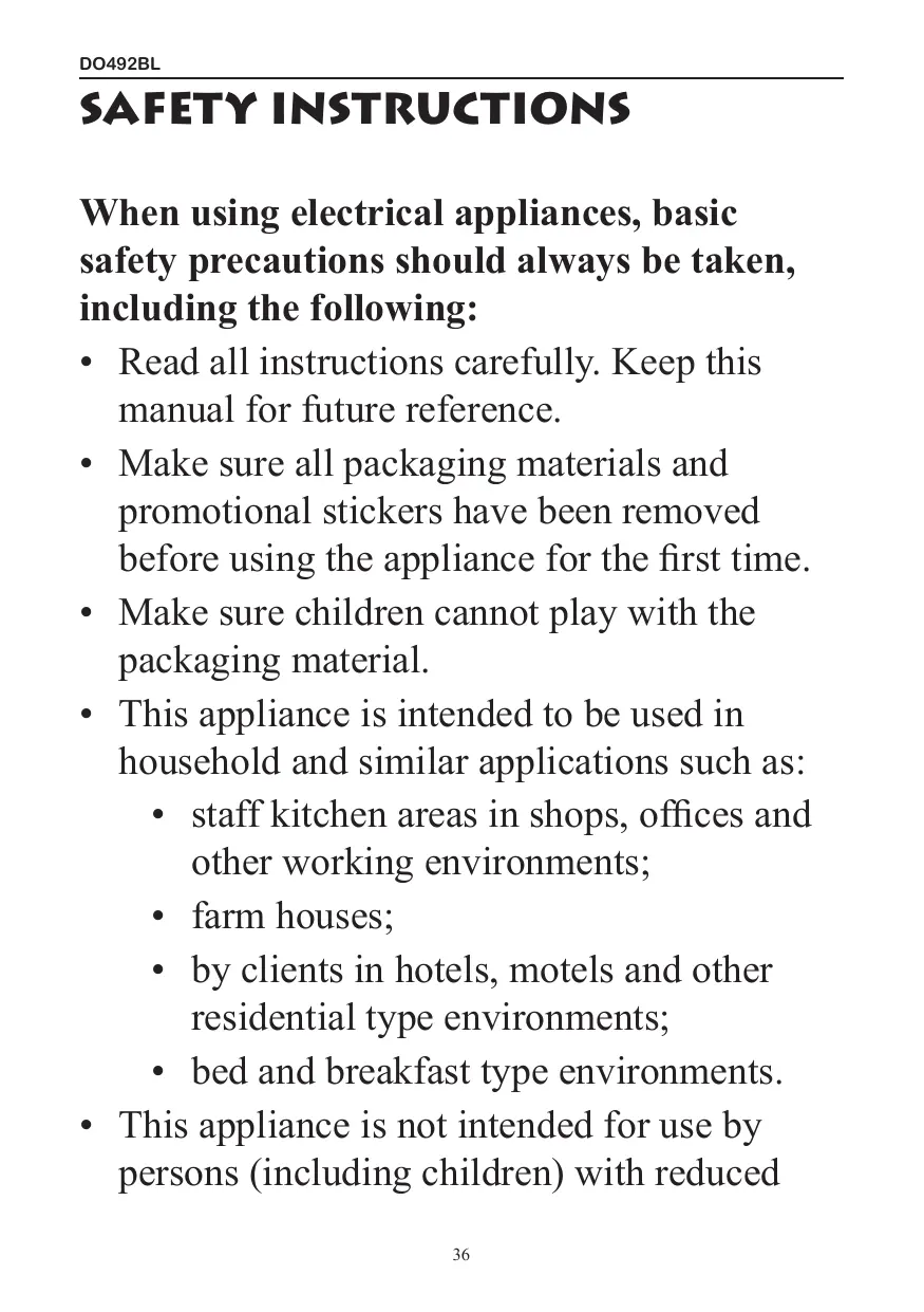 - Make sure all packaging materials and promotional stickers have been removed before using the appliance for the first time.