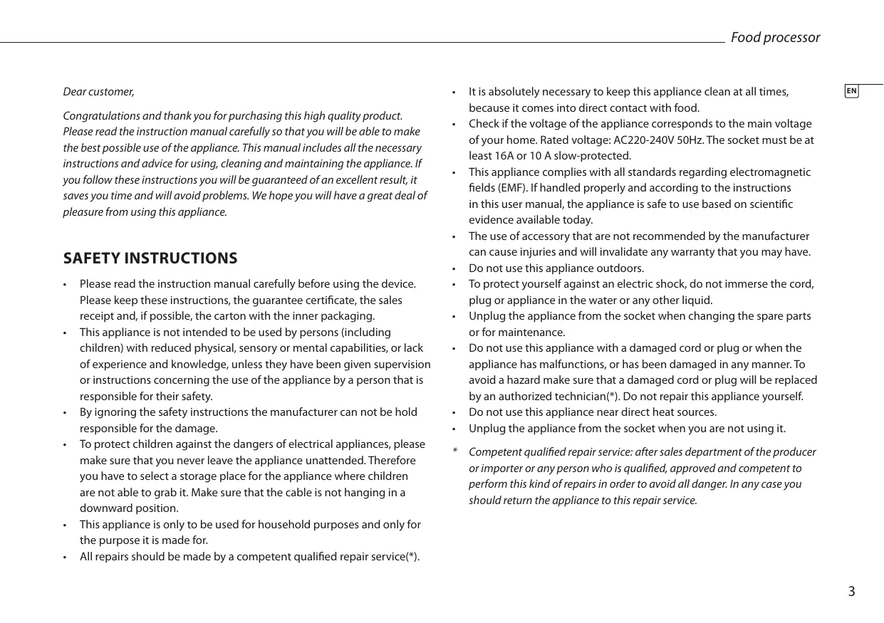 Congratulations and thank you for purchasing this high quality product. Please read the instruction manual carefully so that you will be able to make the best possible use of the appliance. This manual includes all the necessary instructions and advice for using, cleaning and maintaining the appliance. If you follow these instructions you will be guaranteed of an excellent result, it saves you time and will avoid problems. We hope you will have a great deal of pleasure from using this appliance.