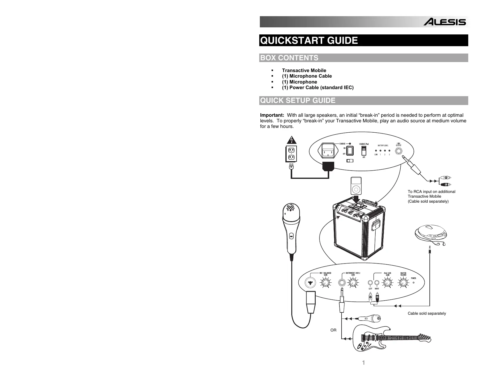 Download the instructions for your Portable Bluetooth Speaker in PDF format for free! Find your manual TRANSACTIVE MOBILE - ALESIS and take your electronic device back in hand. On this page are published all the documents necessary for the use of your device. TRANSACTIVE MOBILE by ALESIS.