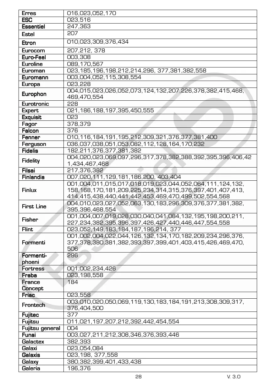 | Beko | 008,023,035,084,198,214,228,311,342,377,378,387,388,399,403,451,456,471,502,505,537,558 |