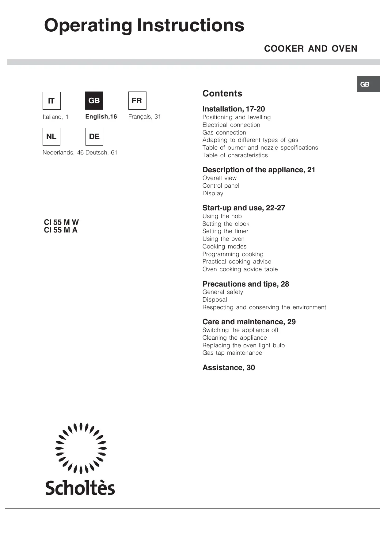 CI 55M A - Kitchen stove SCHOLTES - Free user manual and instructions