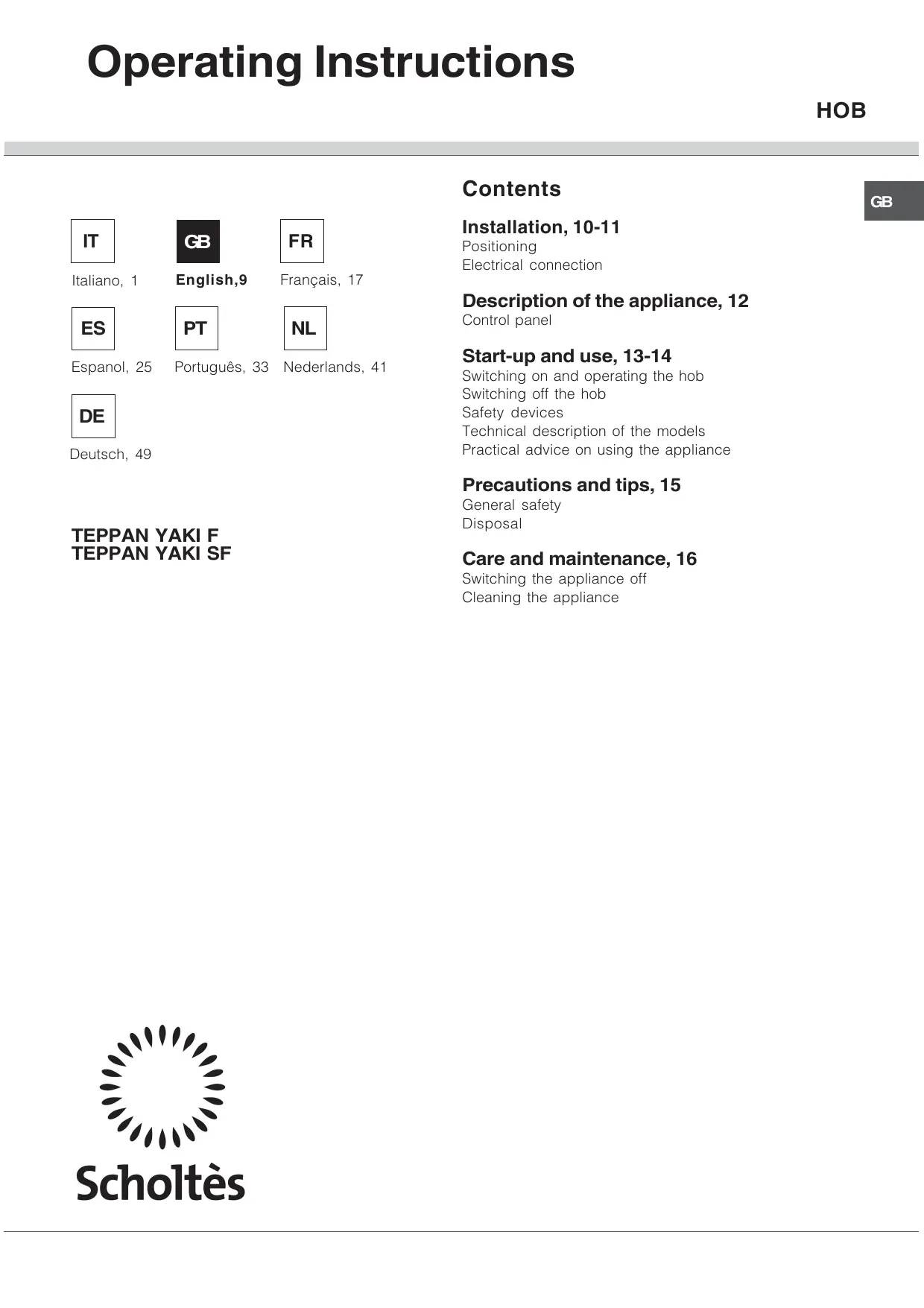Find the device manual for free TEPPAN YAKI F SCHOLTES in PDF.