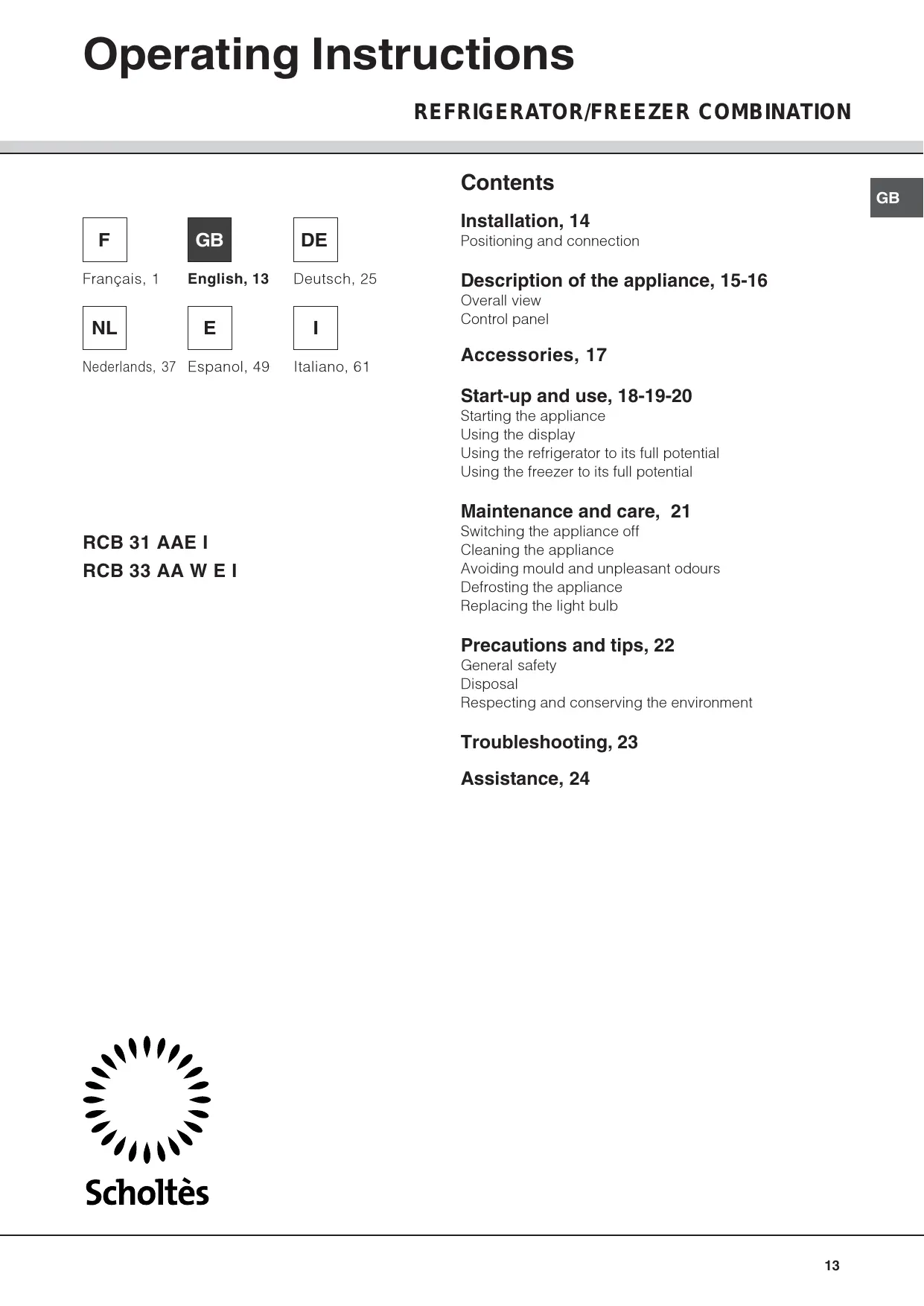 Find the device manual for free RCB 31 AAE I SCHOLTES in PDF.