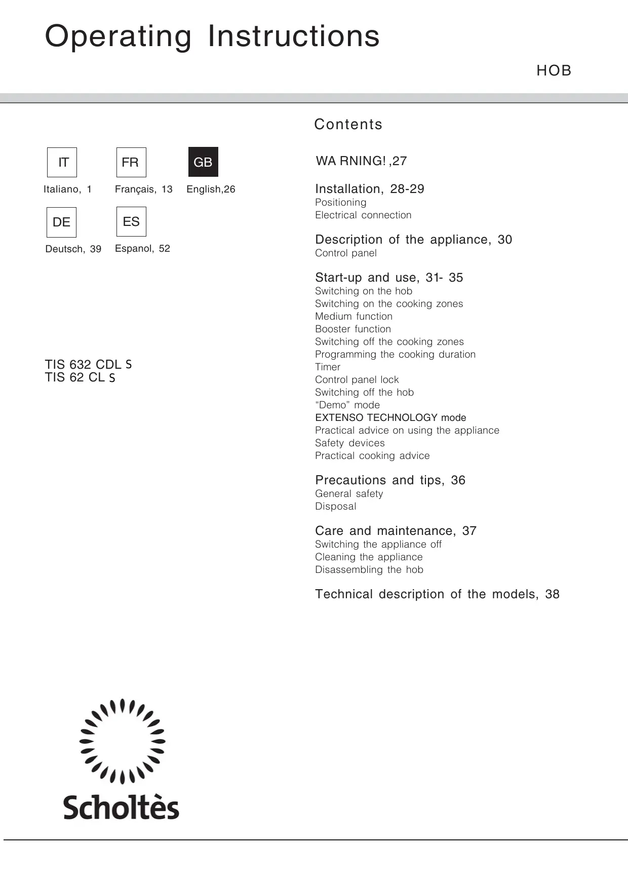 TIS 632 CD L S - Hob SCHOLTES - Free user manual and instructions
