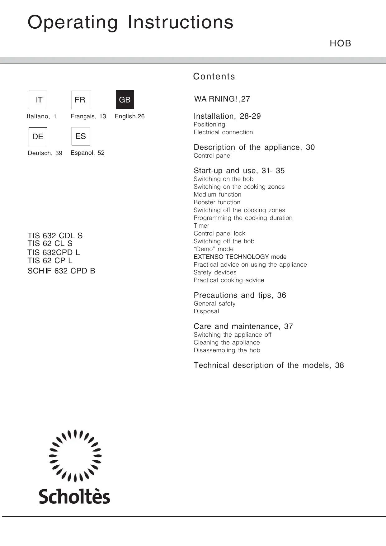 SCH IF 632 CPD B - Hob SCHOLTES - Free user manual and instructions