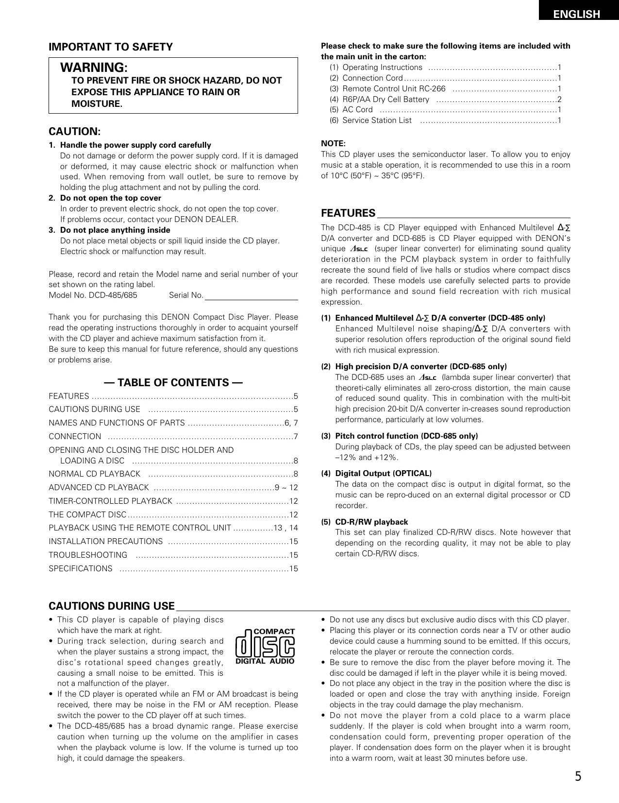 USER MANUAL DCD-485 DENON