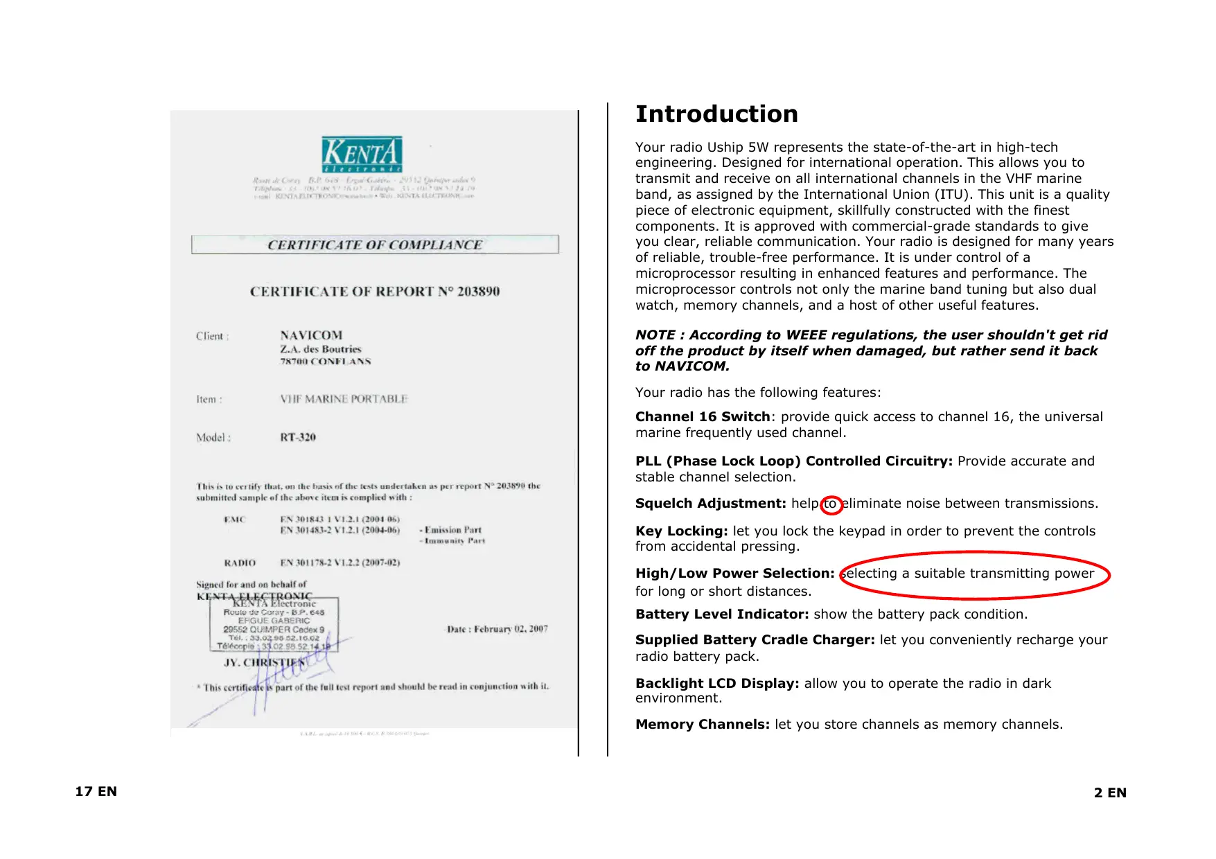 RT-320 - VHF portable radio NAVICOM - Free user manual and instructions