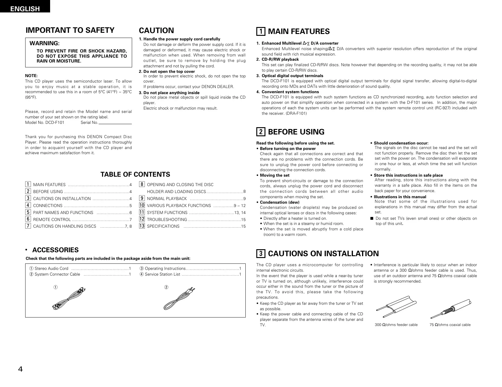 USER MANUAL DCD-F101 DENON