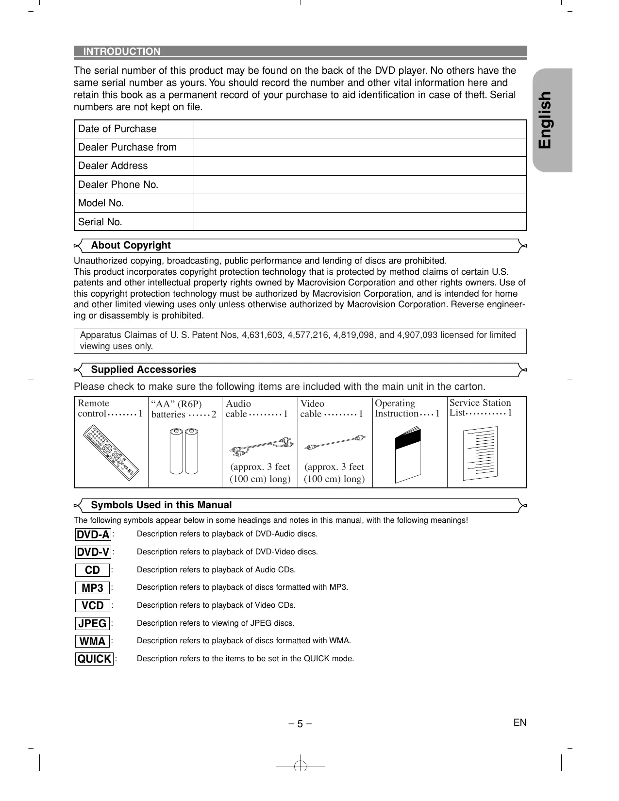- If the player still does not perform properly when it is operated while referring to the relevant sections and to "TROUBLESHOOTING GUIDE" in this Operating Instruction, the laser optical pickup unit may be dirty. Consult your dealer or an Authorized Service Center for inspection and cleaning of the laser optical pickup unit.