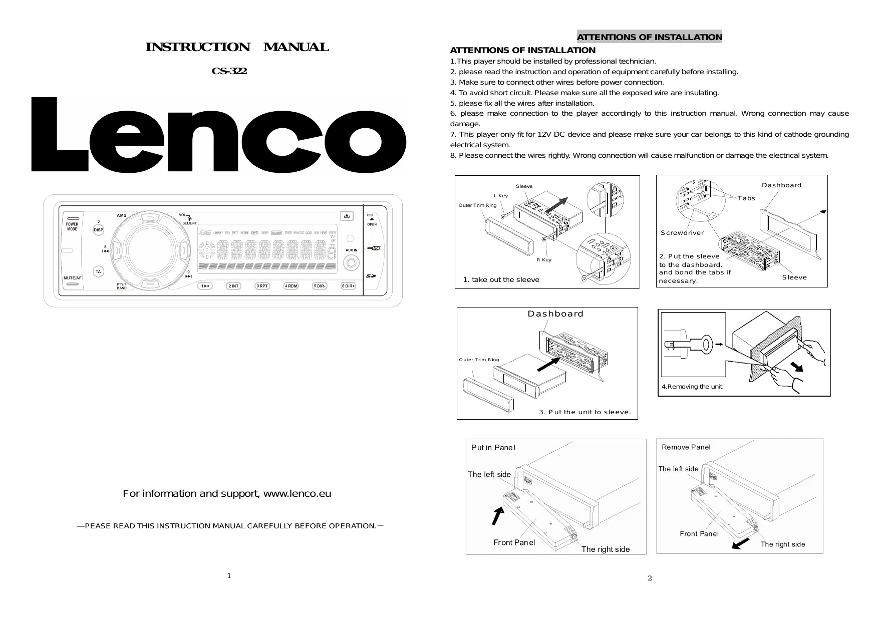 USER MANUAL CS-322 LENCO