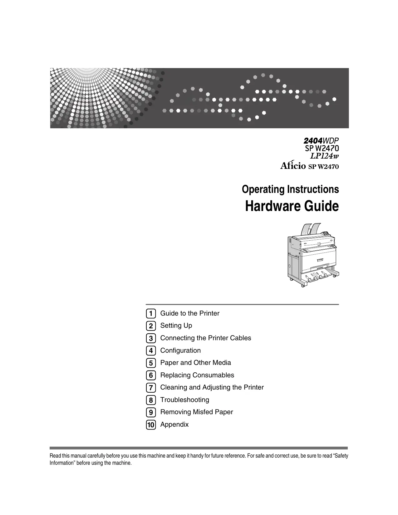 Download the instructions for your Imprimante multifonction in PDF format for free! Find your manual AFICIO SP W2470 - RICOH and take your electronic device back in hand. On this page are published all the documents necessary for the use of your device. AFICIO SP W2470 by RICOH.