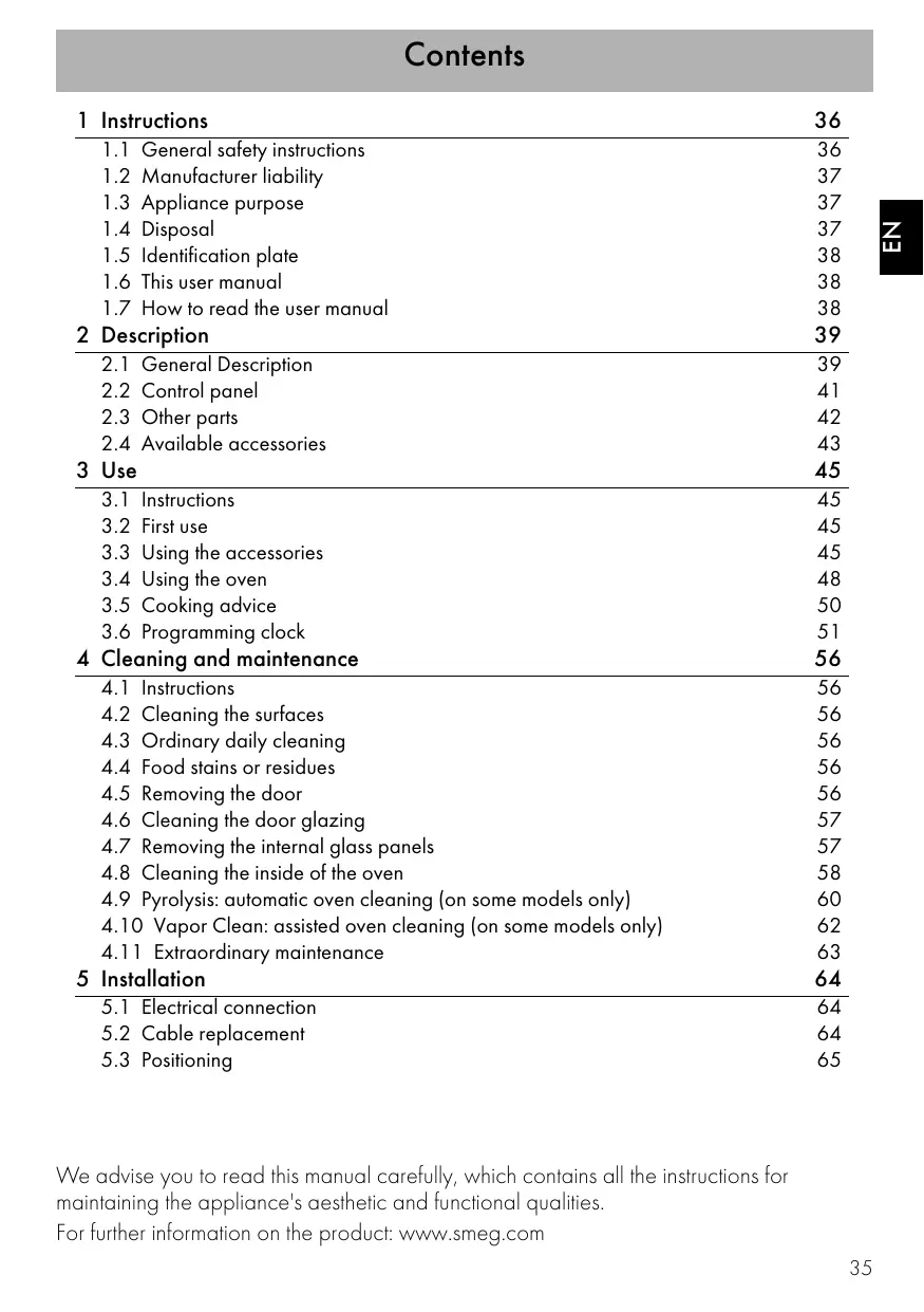 We advise you to read this manual carefully, which contains all the instructions for maintaining the appliance's aesthetic and functional qualities: For further information on the product: www.smeg.com
