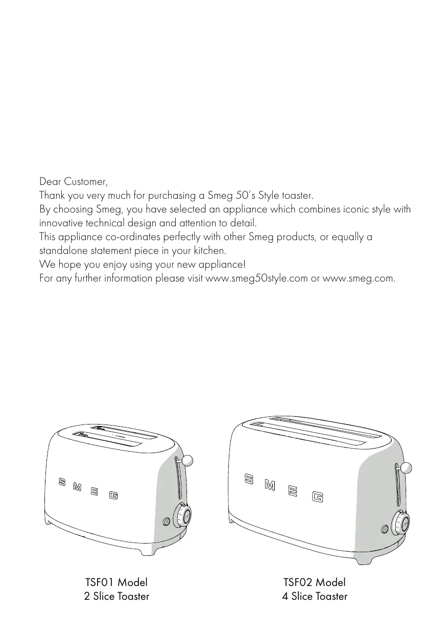 Thank you very much for purchasing a Smeg 50's Style toaster.