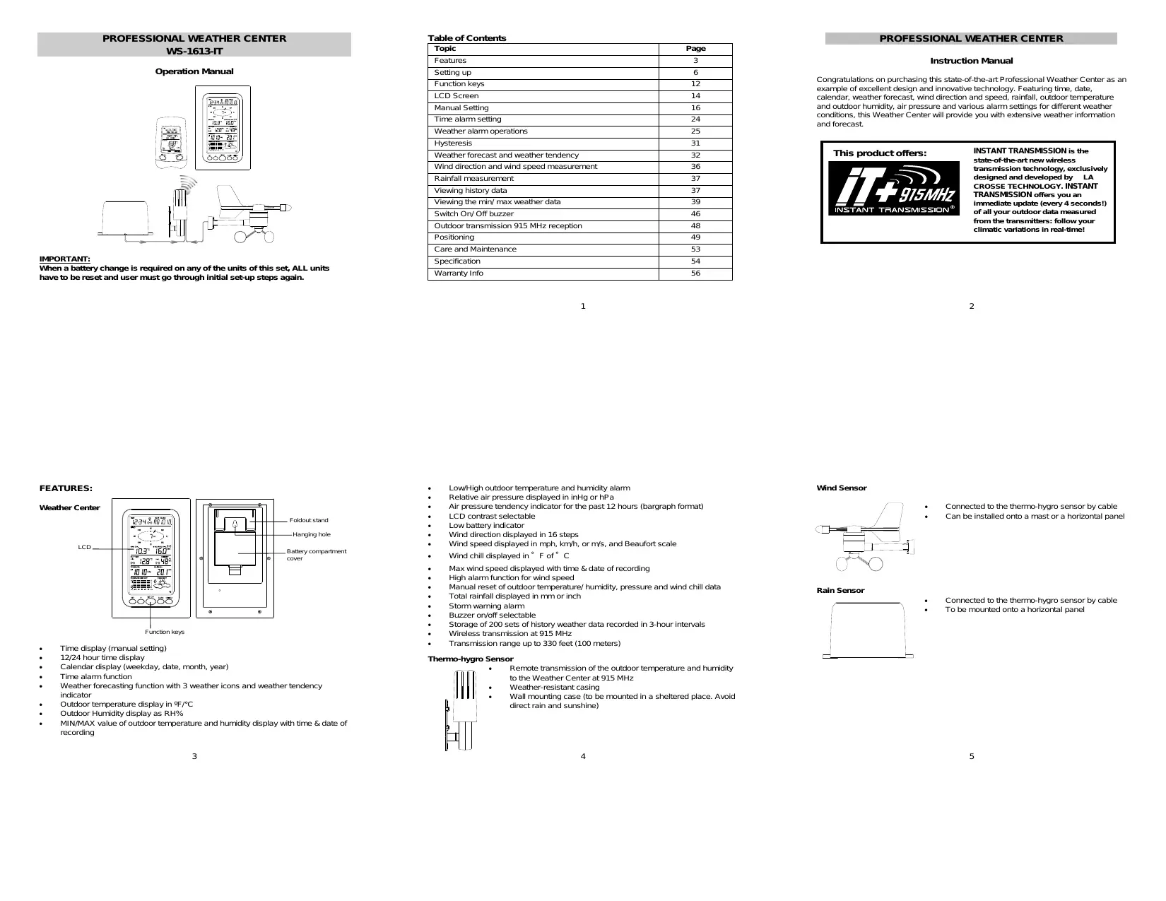 USER MANUAL WS 1613-ITC LA CROSSE TECHNOLOGY