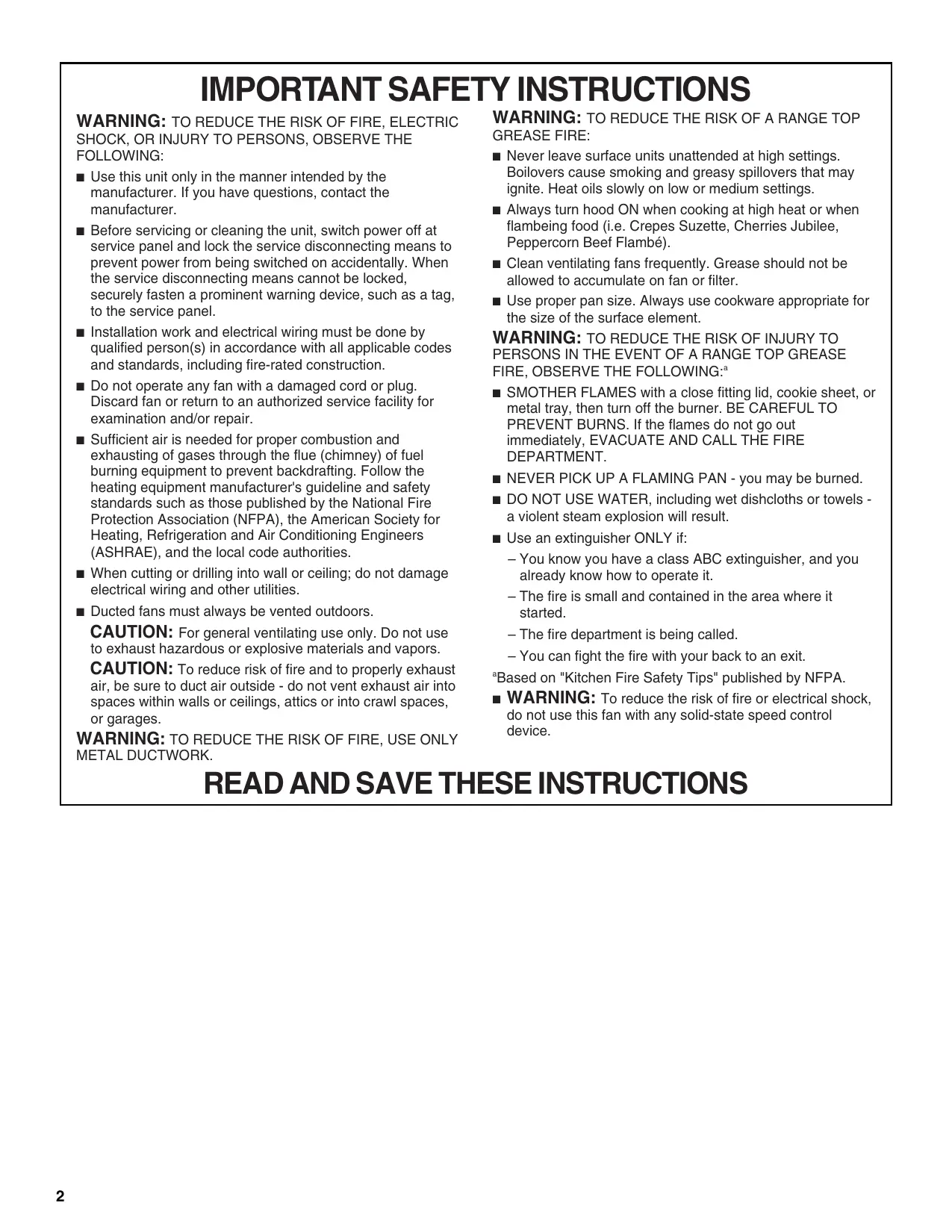 READ AND SAVE THESE INSTRUCTIONS