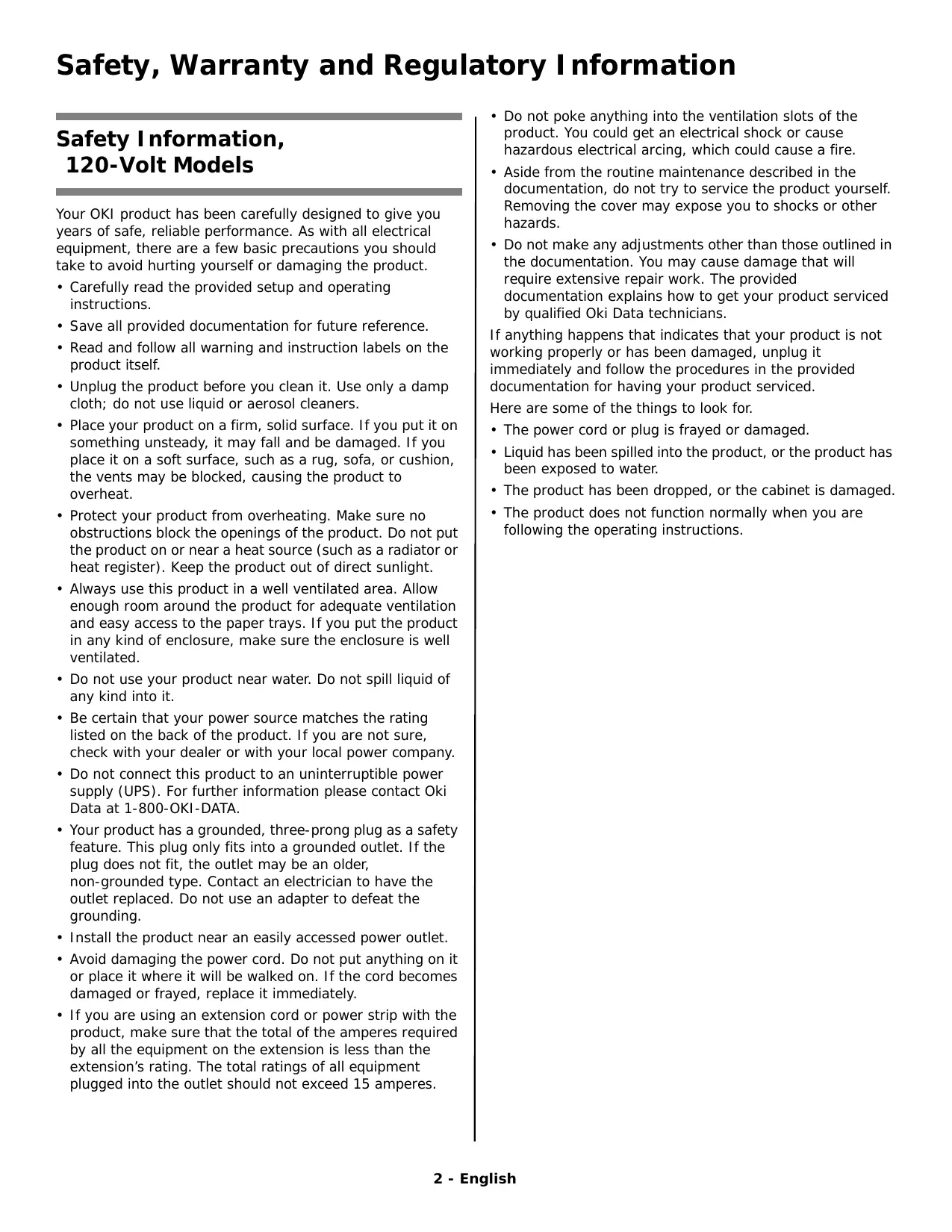 Your OKI product has been carefully designed to give you years of safe, reliable performance. As with all electrical equipment, there are a few basic precautions you should take to avoid hurting yourself or damaging the product.