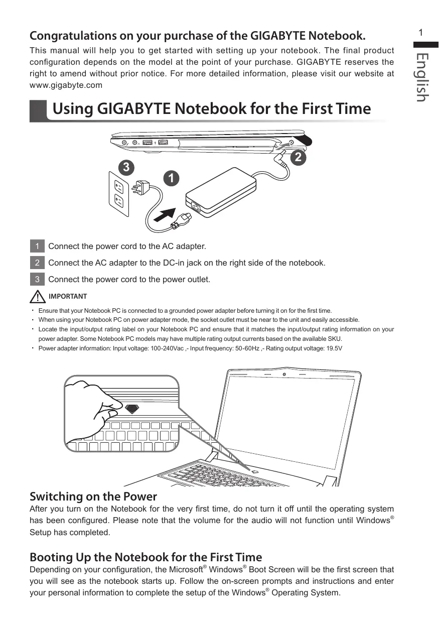Congratulations on your purchase of the GIGABYTE Notebook.