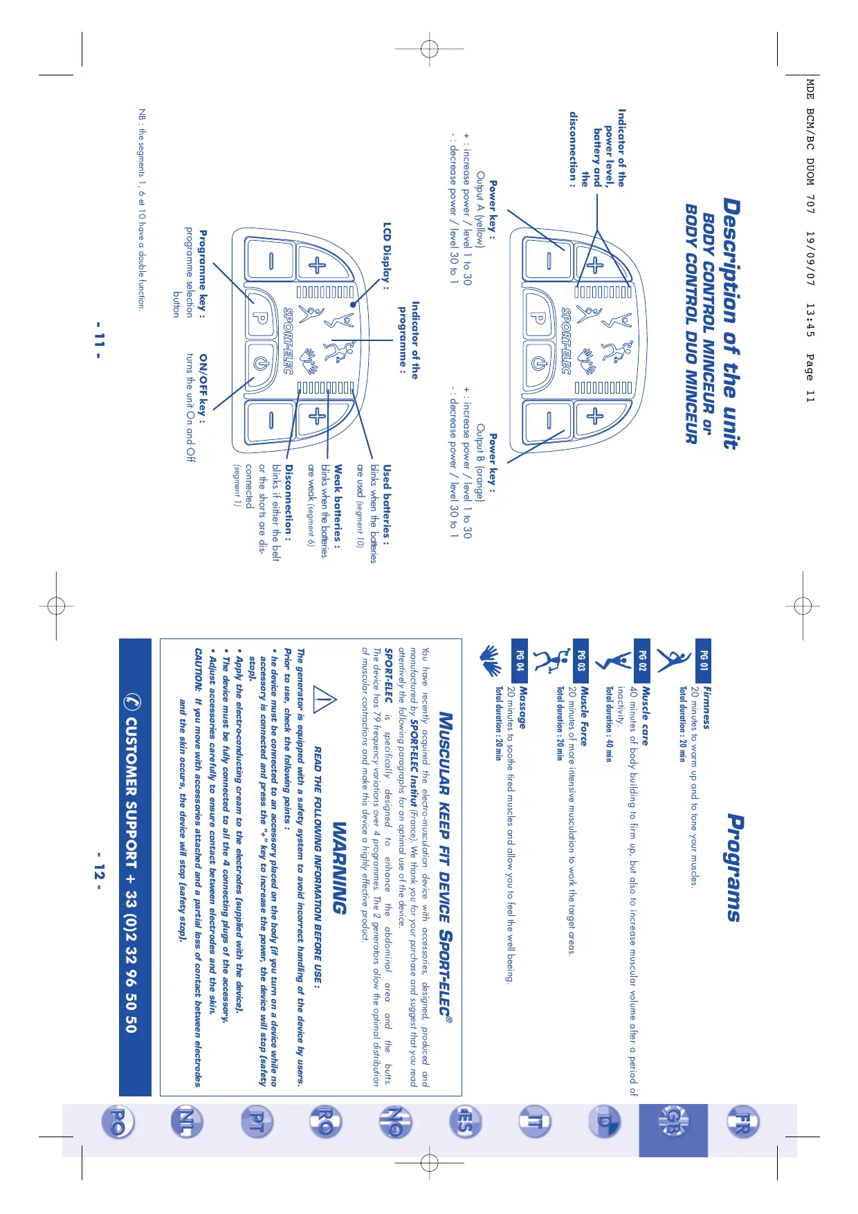 Find the device manual for free BODY CONTROL DUO MINCEUR SPORT ELEC in PDF.