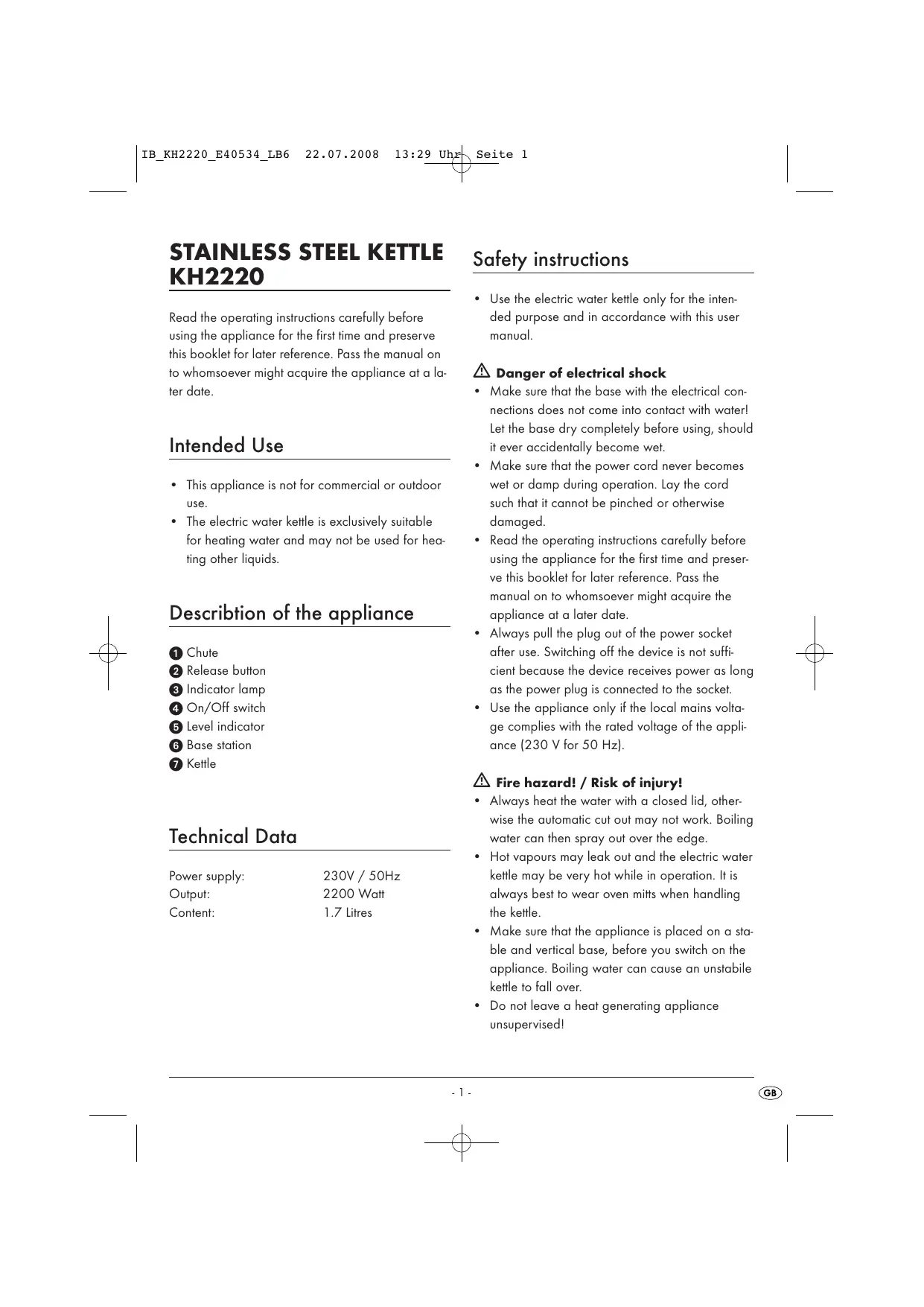 Download the instructions for your in PDF format for free! Find your manual KH 2220 - BIFINETT and take your electronic device back in hand. On this page are published all the documents necessary for the use of your device. KH 2220 by BIFINETT.