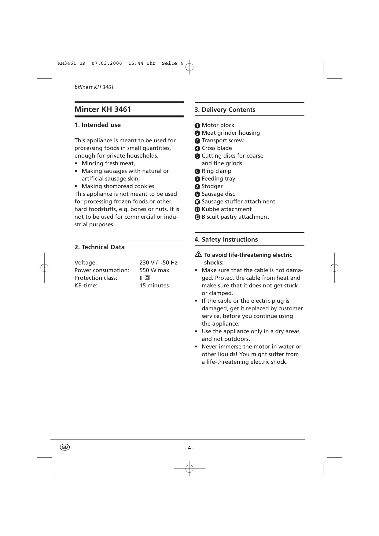 KH 3461 - BIFINETT - Free user manual and instructions