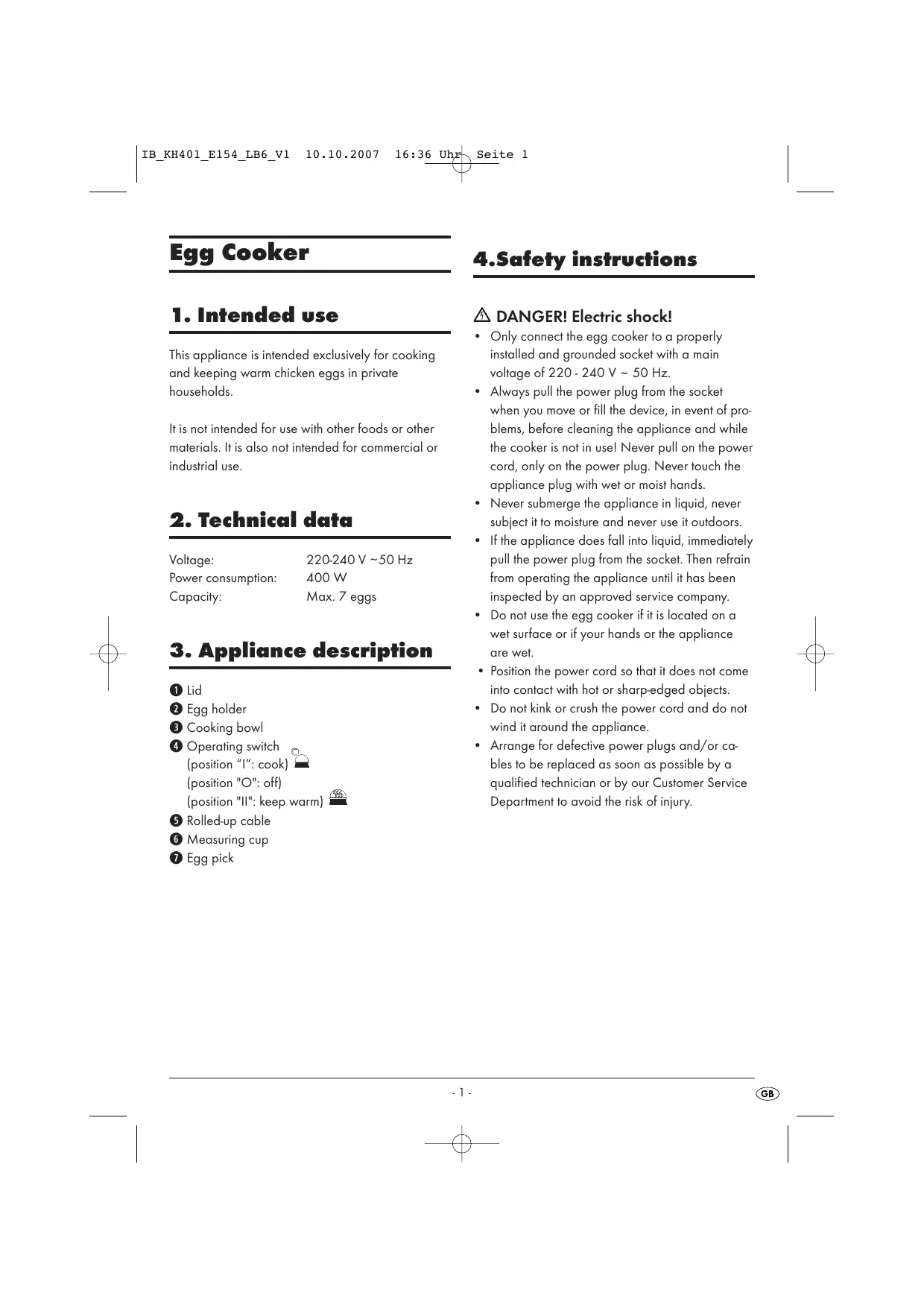 Download the instructions for your Cuiseur à œufs in PDF format for free! Find your manual KH 401 EGG COOKER - BIFINETT and take your electronic device back in hand. On this page are published all the documents necessary for the use of your device. KH 401 EGG COOKER by BIFINETT.