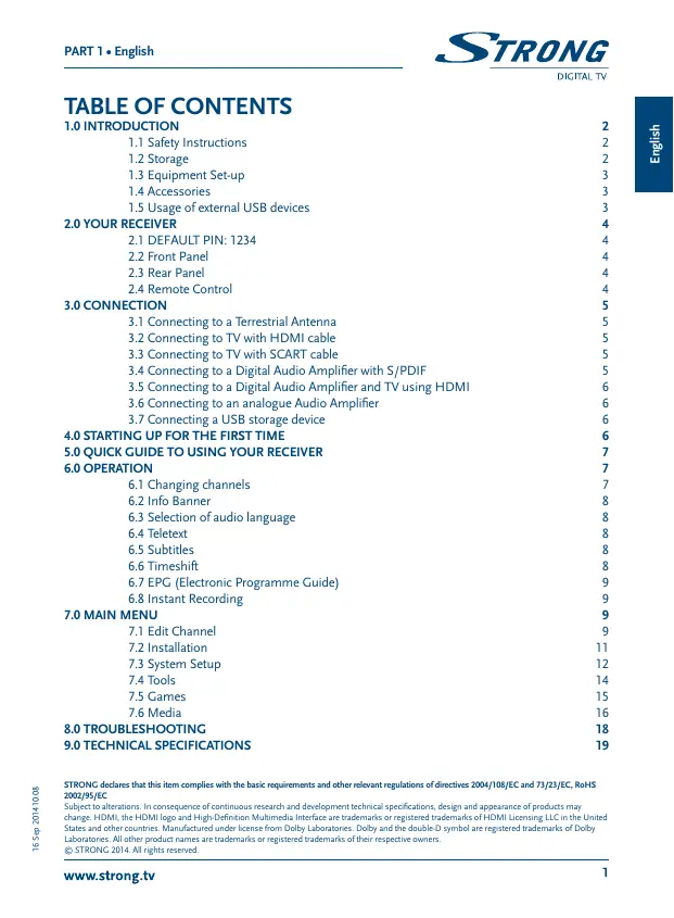 SRT 8112 - Satellite decoder STRONG - Free user manual and instructions
