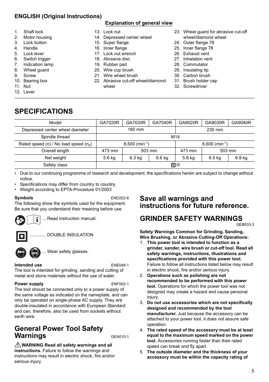 GA7040R - Meuleuse MAKITA - Free user manual and instructions
