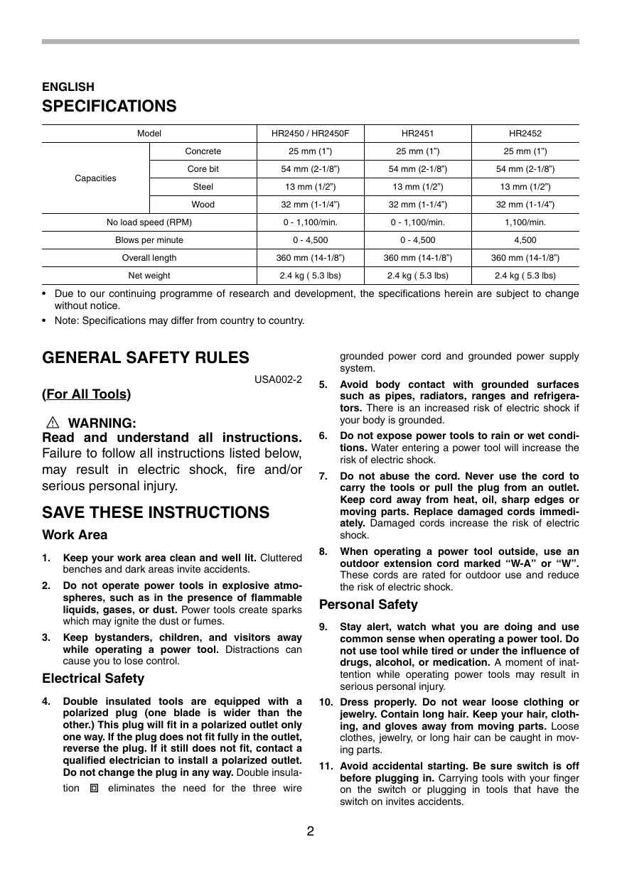 USER MANUAL HR2452 MAKITA