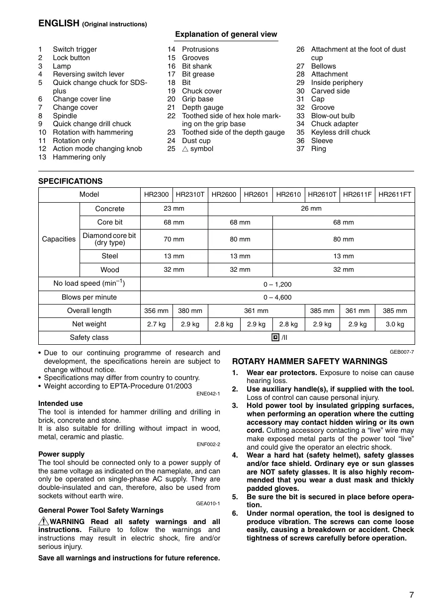Download the instructions for your Jackhammer in PDF format for free! Find your manual HR2611F - MAKITA and take your electronic device back in hand. On this page are published all the documents necessary for the use of your device. HR2611F by MAKITA.