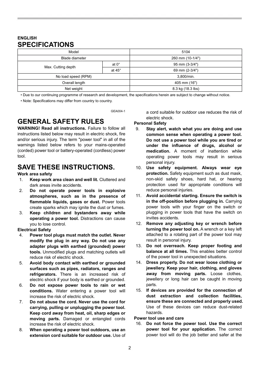 Download the instructions for your Circular saw in PDF format for free! Find your manual 5104 - MAKITA and take your electronic device back in hand. On this page are published all the documents necessary for the use of your device. 5104 by MAKITA.