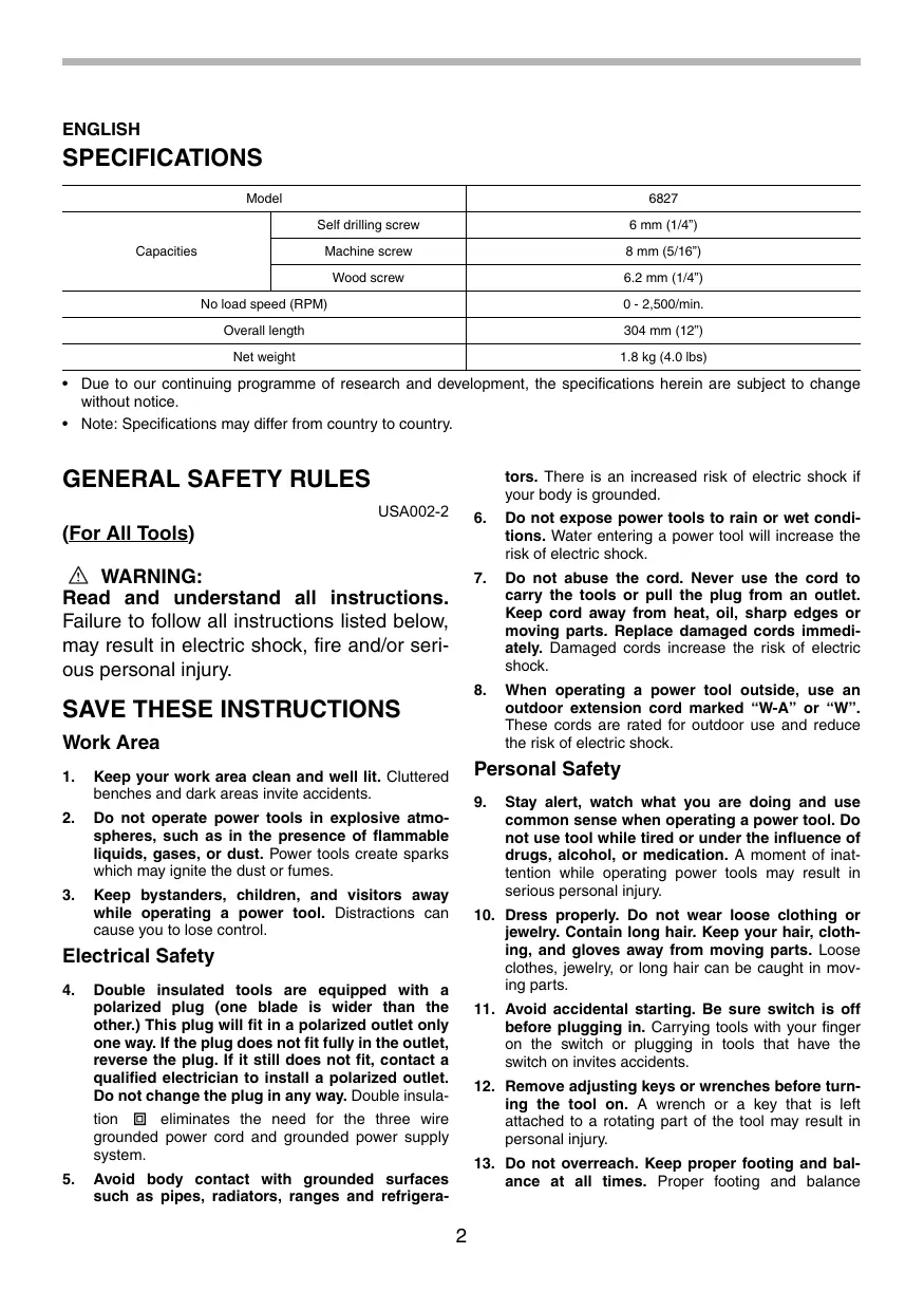 USER MANUAL 6827 MAKITA