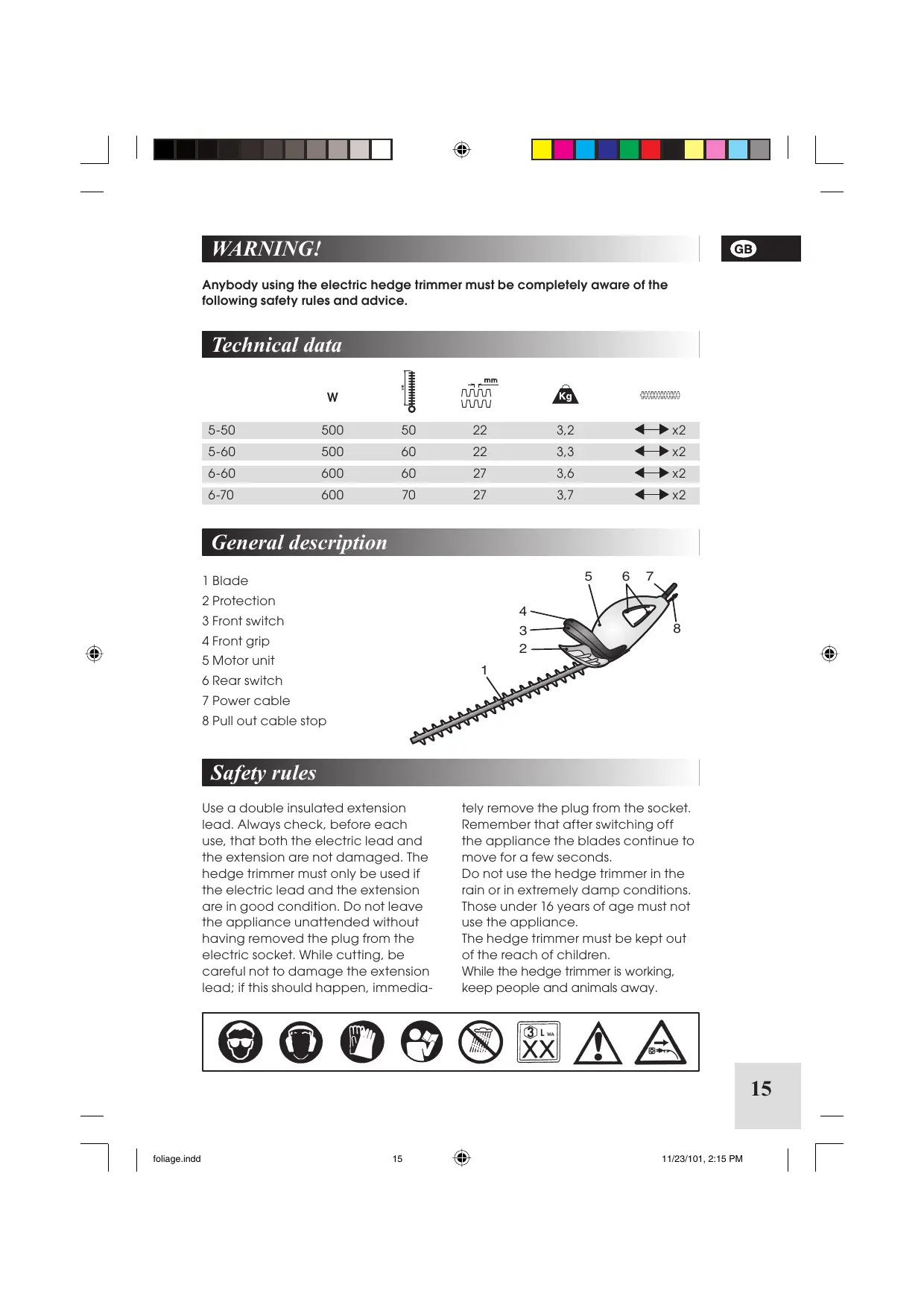 Anybody using the electric hedge trimmer must be completely aware of the following safety rules and advice.