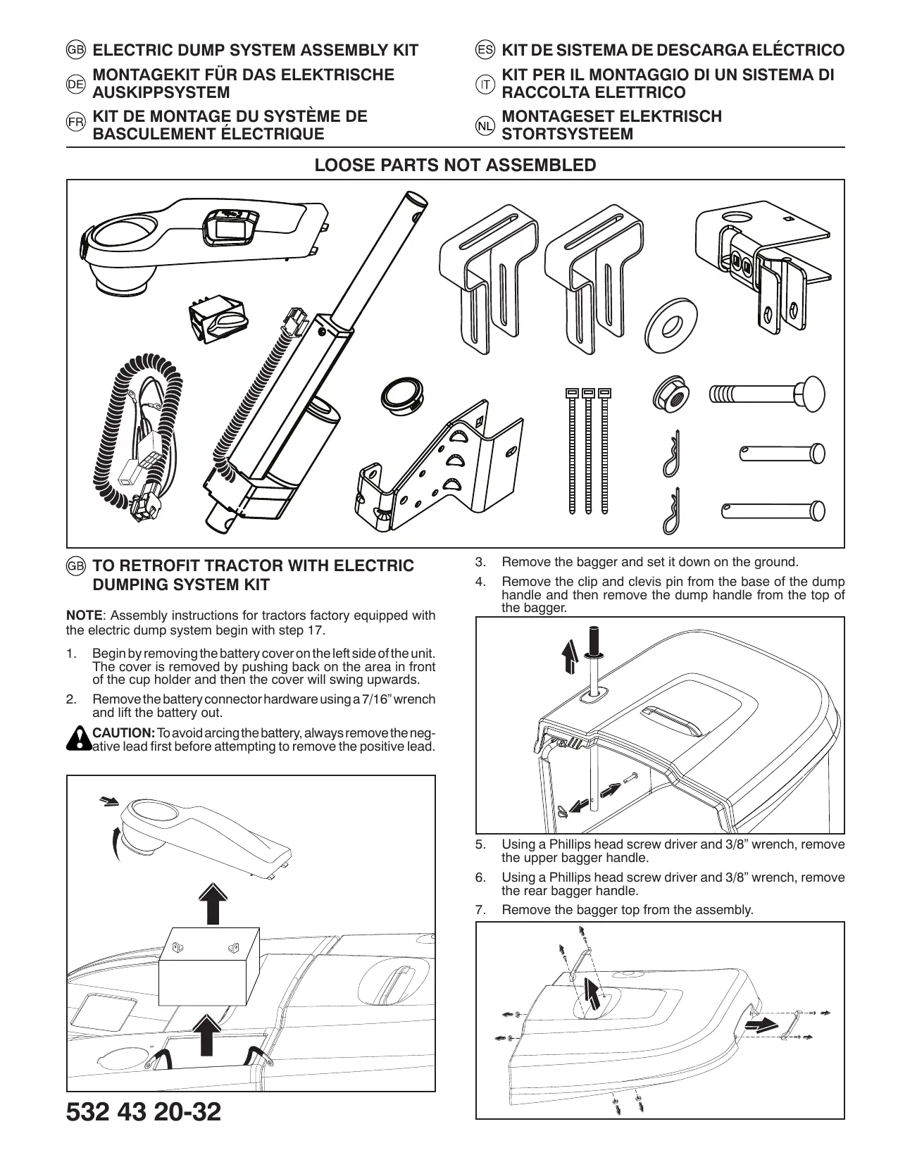 ASSEMBLY INSTRUCTIONS FOR TRACTORS FACTORY EQUIPPED WITH ELECTRIC DUMP SYSTEM BEGIN HERE.