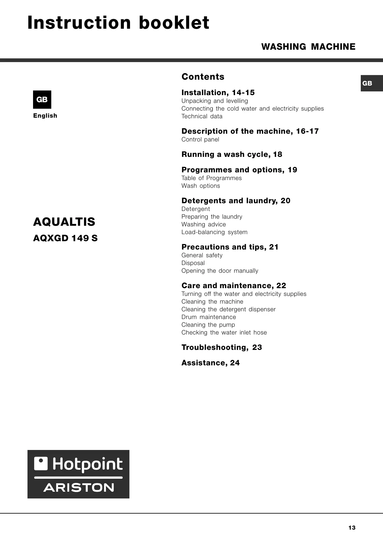 Download the instructions for your in PDF format for free! Find your manual AQXGD 149 S - HOTPOINT-ARISTON and take your electronic device back in hand. On this page are published all the documents necessary for the use of your device. AQXGD 149 S by HOTPOINT-ARISTON.