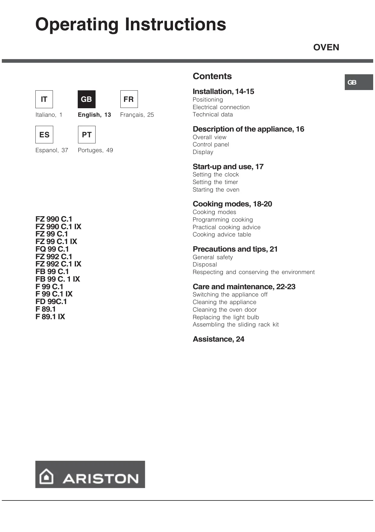 Find the device manual for free FQ 99 C. 1/HA, FQ 99 GP 1 FHA ICE, FQ 99 GP1 FHA ICE HOTPOINT-ARISTON in PDF.