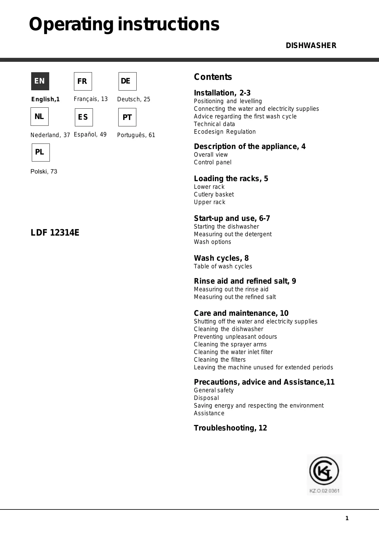 Download the instructions for your Dishwasher in PDF format for free! Find your manual LDF 12314, LDF12314EEU - HOTPOINT-ARISTON and take your electronic device back in hand. On this page are published all the documents necessary for the use of your device. LDF 12314, LDF12314EEU by HOTPOINT-ARISTON.