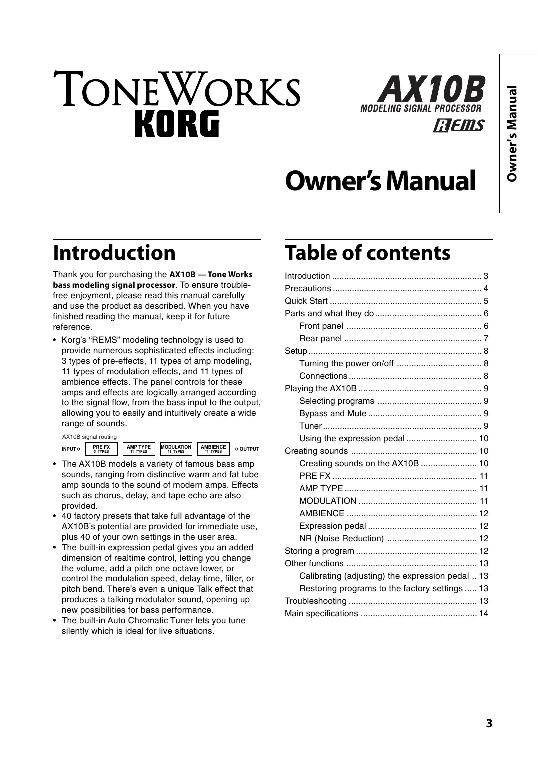 Download the instructions for your Bass Multi-effects in PDF format for free! Find your manual AX10B - KORG and take your electronic device back in hand. On this page are published all the documents necessary for the use of your device. AX10B by KORG.