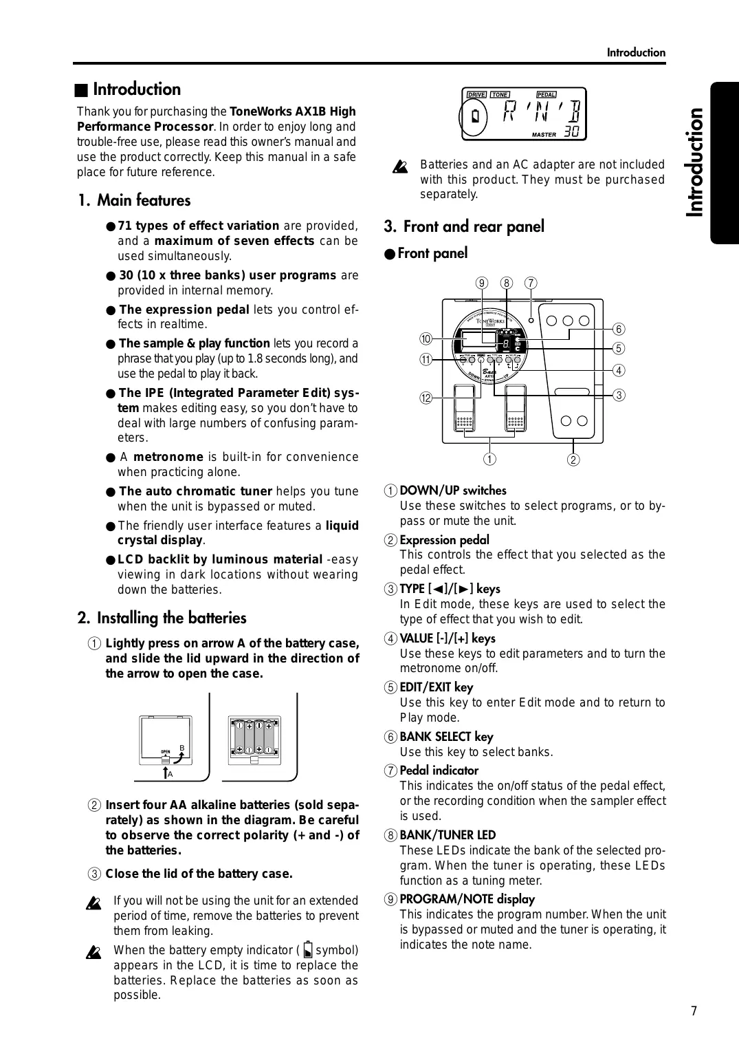 Thank you for purchasing the ToneWorks AX1B High Performance Processor. In order to enjoy long and trouble-free use, please read this owner's manual and use the product correctly. Keep this manual in a safe place for future reference.