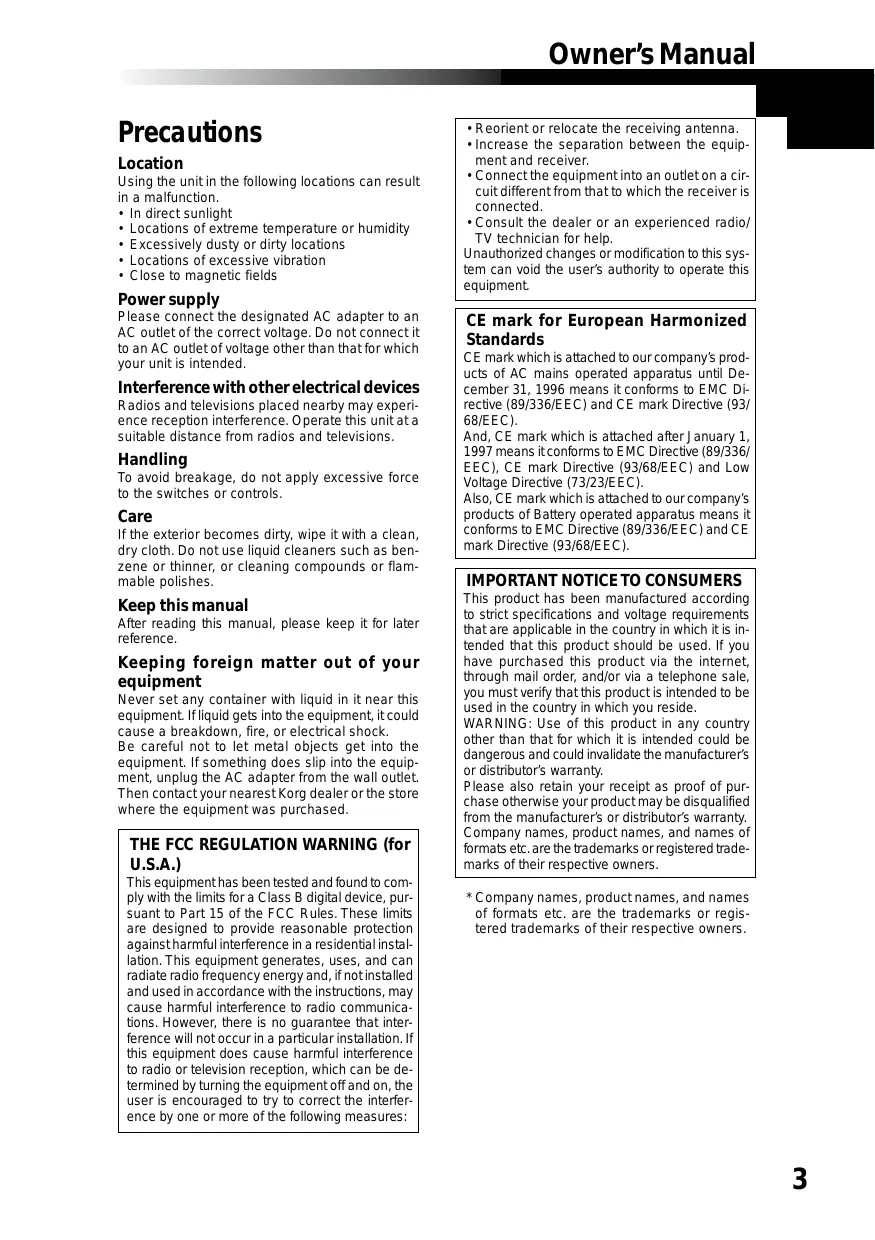 Please connect the designated AC adapter to an AC outlet of the correct voltage. Do not connect it to an AC outlet of voltage other than that for which your unit is intended.