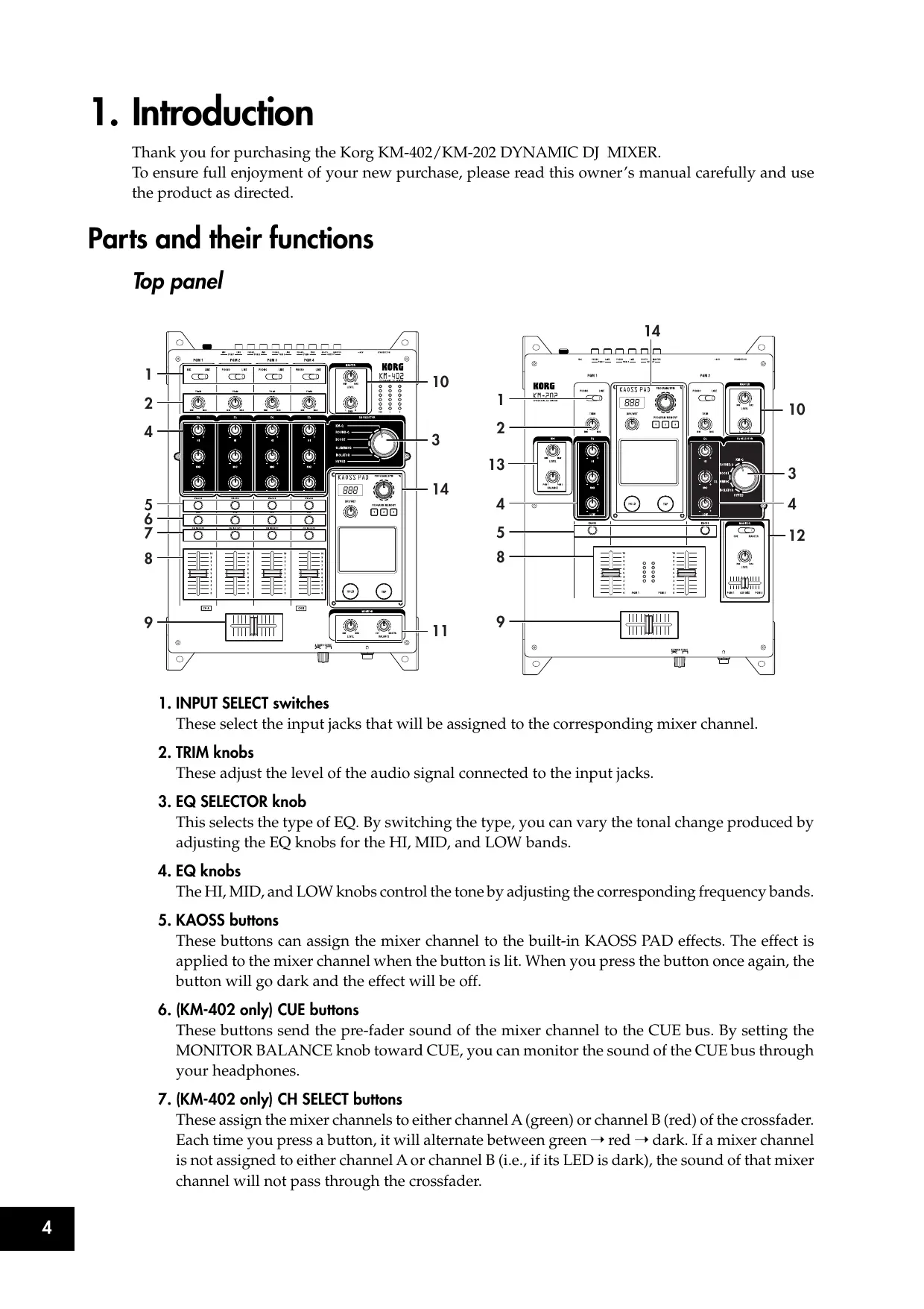 Thank you for purchasing the Korg KM-402/KM-202 DYNAMIC DJ MIXER.
